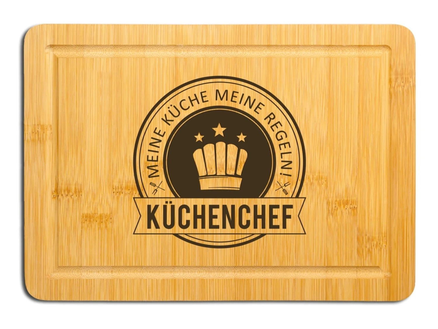 Bambus Schneidebrett mit Spruch: Küchenchef 👨🍳 Meine Küche 🍴 Meine Regeln
