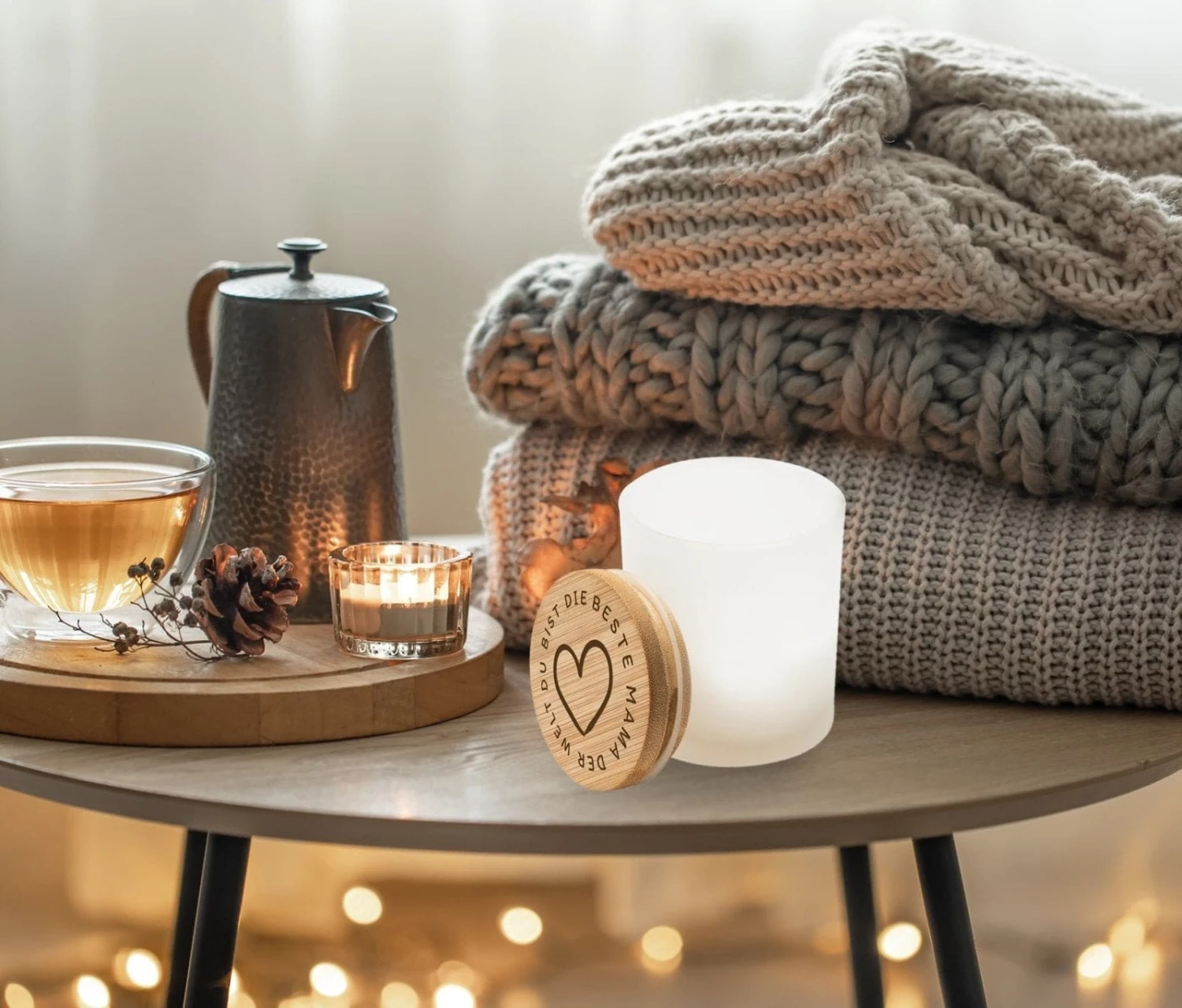 Duftkerze mit Bambusdeckel und Spruch: Du bist die beste Mama der Welt ♡