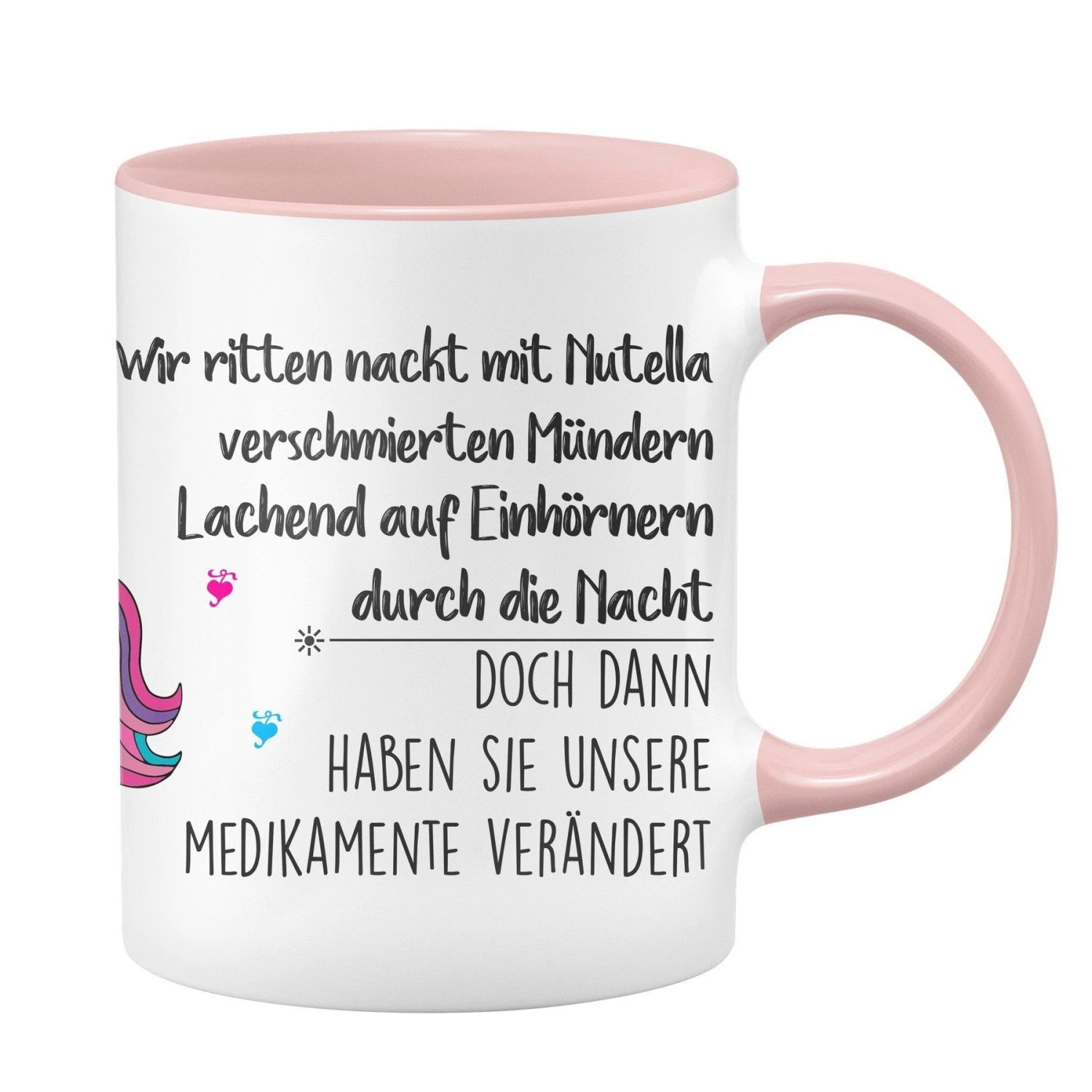 mit Spruch: Wir ritten nackt mit Nutella verschmierten Mündern lachend auf Einhörnern durch die Nacht. Doch dann haben Sie unsere Medikamente verändert. 🦄