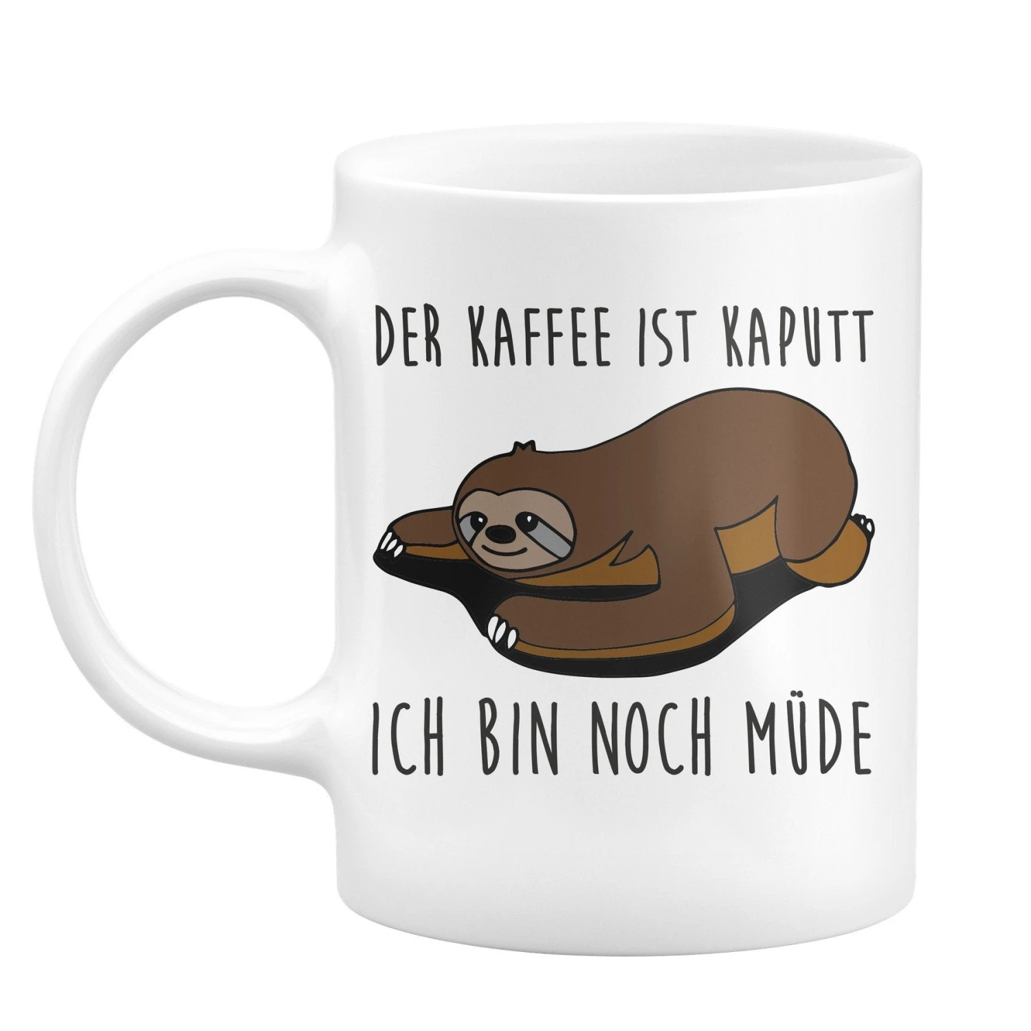 Faultier-Tasse mit Spruch: Der Kaffee ist kaputt 🦥 Ich bin noch müde