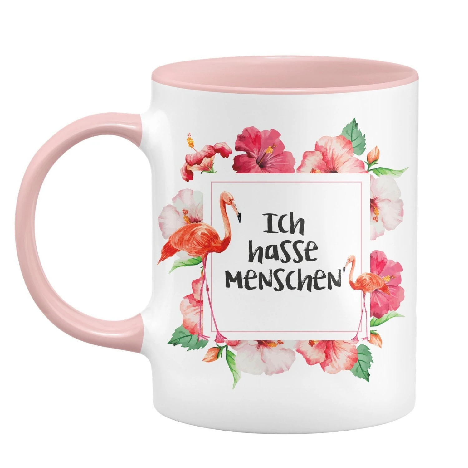 Tasse mit Spruch: Ich hasse Menschen 🦩