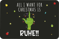 Lass den Grinch die Weihnachtsstimmung für dich mit dieser einzigartigen Fußmatte ausdrücken! Das auffällige Design zeigt den frechen Grinch Mittelfinger, begleitet von dem humorvollen Spruch „All I want for Christmas is Ruhe!“ Ein perfektes Statement für alle, die der alljährlichen Weihnachtshektik entfliehen wollen.
