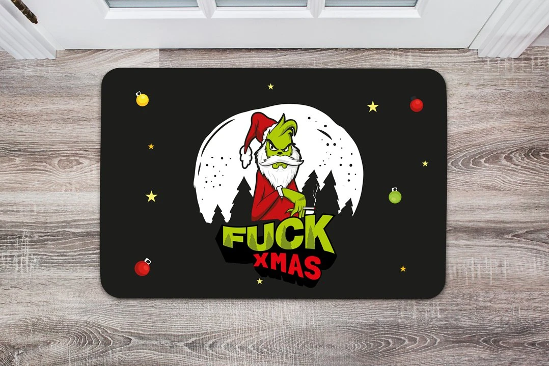 Fußmatte mit Grinch Motiv und Spruch: Fuck Xmas 🌲