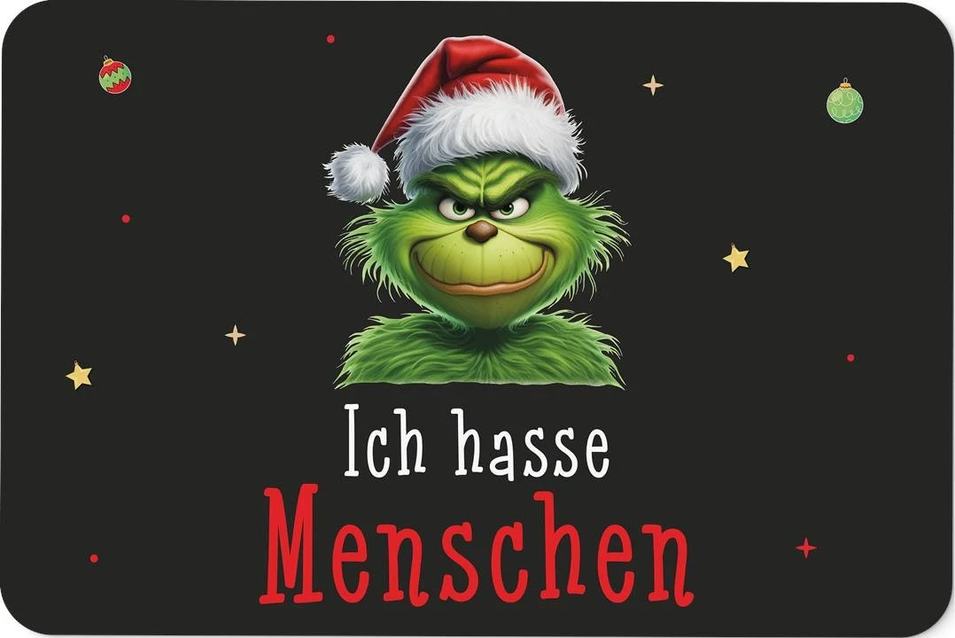 Willkommen in der wunderbar grinchigen Welt der Fußmatte, die genau das richtige Statement für alle Christmas-Hater da draußen setzt. Mit unserem exklusiven Grinch-Motiv und dem markanten Spruch „Ich hasse Menschen“ zeigt diese Fußmatte unmissverständlich, dass du keine Lust auf das fröhliche Weihnachtsgetümmel hast.