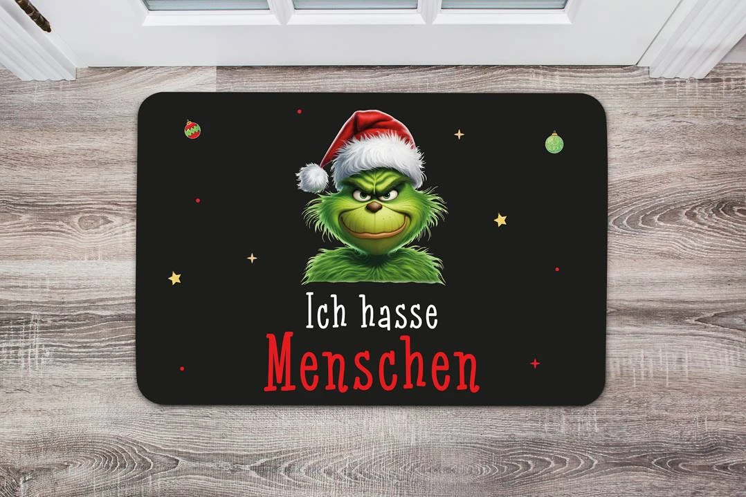 Fußmatte mit Grinch Motiv und Spruch: Ich hasse Menschen ⭐