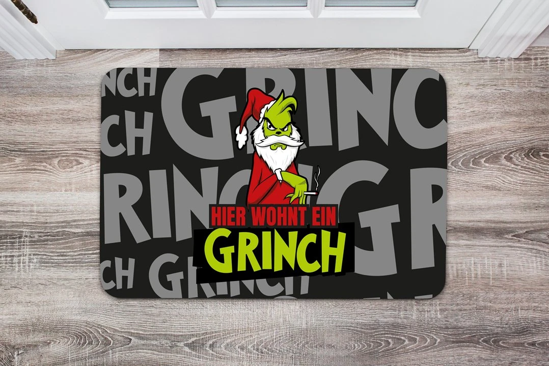 Fußmatte mit Grinch Motiv und Spruch: Hier wohnt ein Grinch ⭐