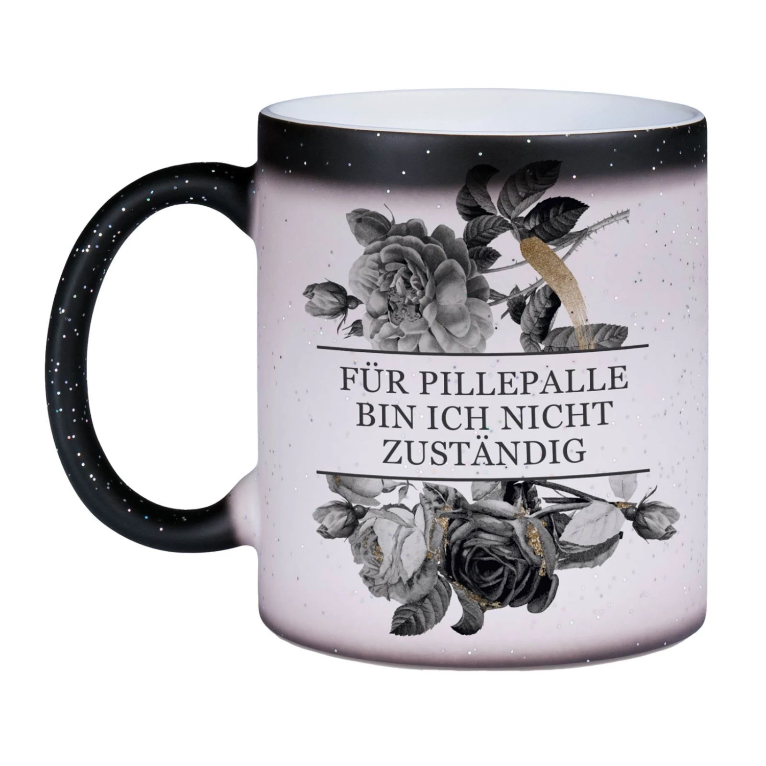 Black Rose 🖤🌹 Glitzer-Zaubertasse mit Spruch: Für Pillepalle bin ich nicht zuständig
