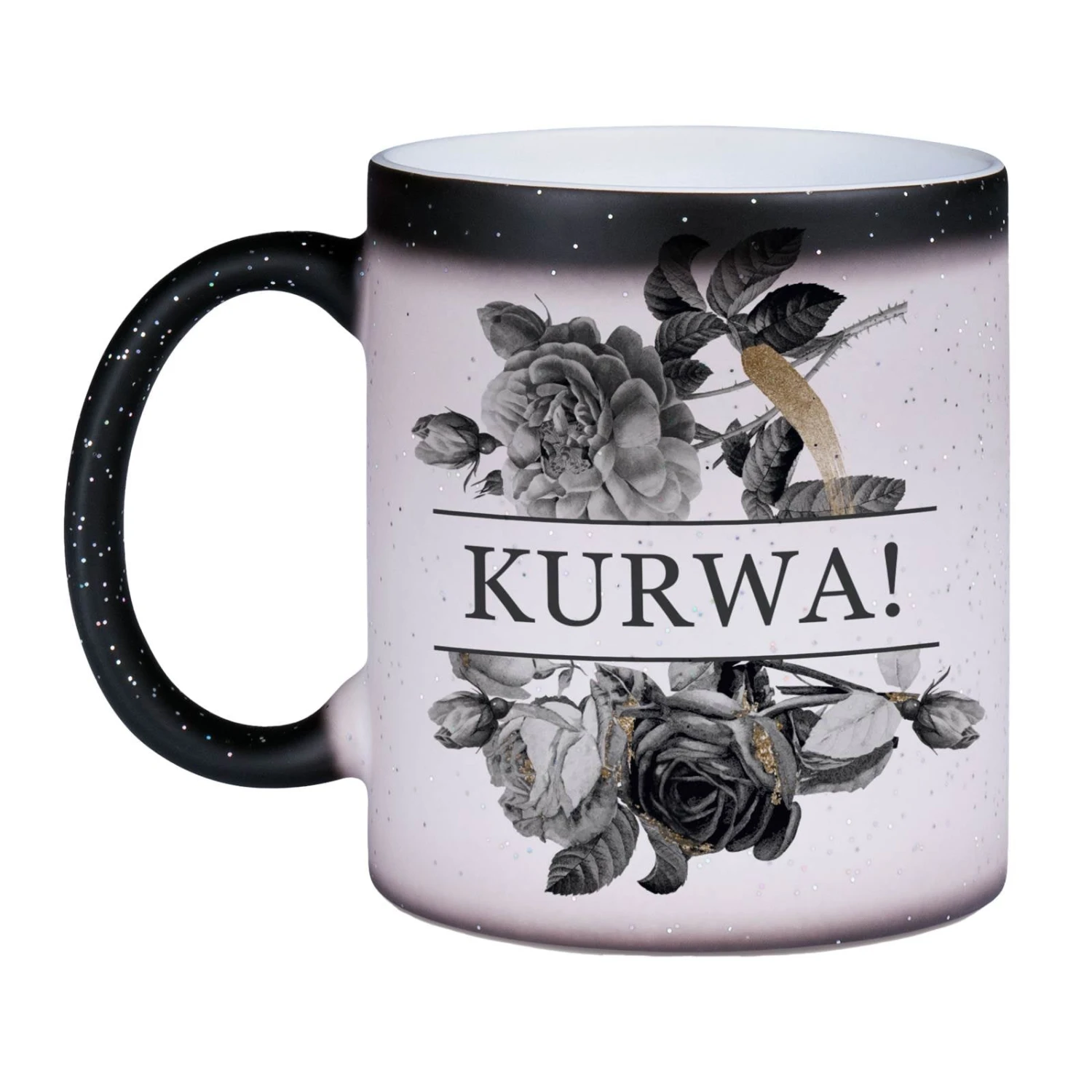 Black Rose 🖤🌹 Glitzer-Zaubertasse mit Spruch: Kurwa!