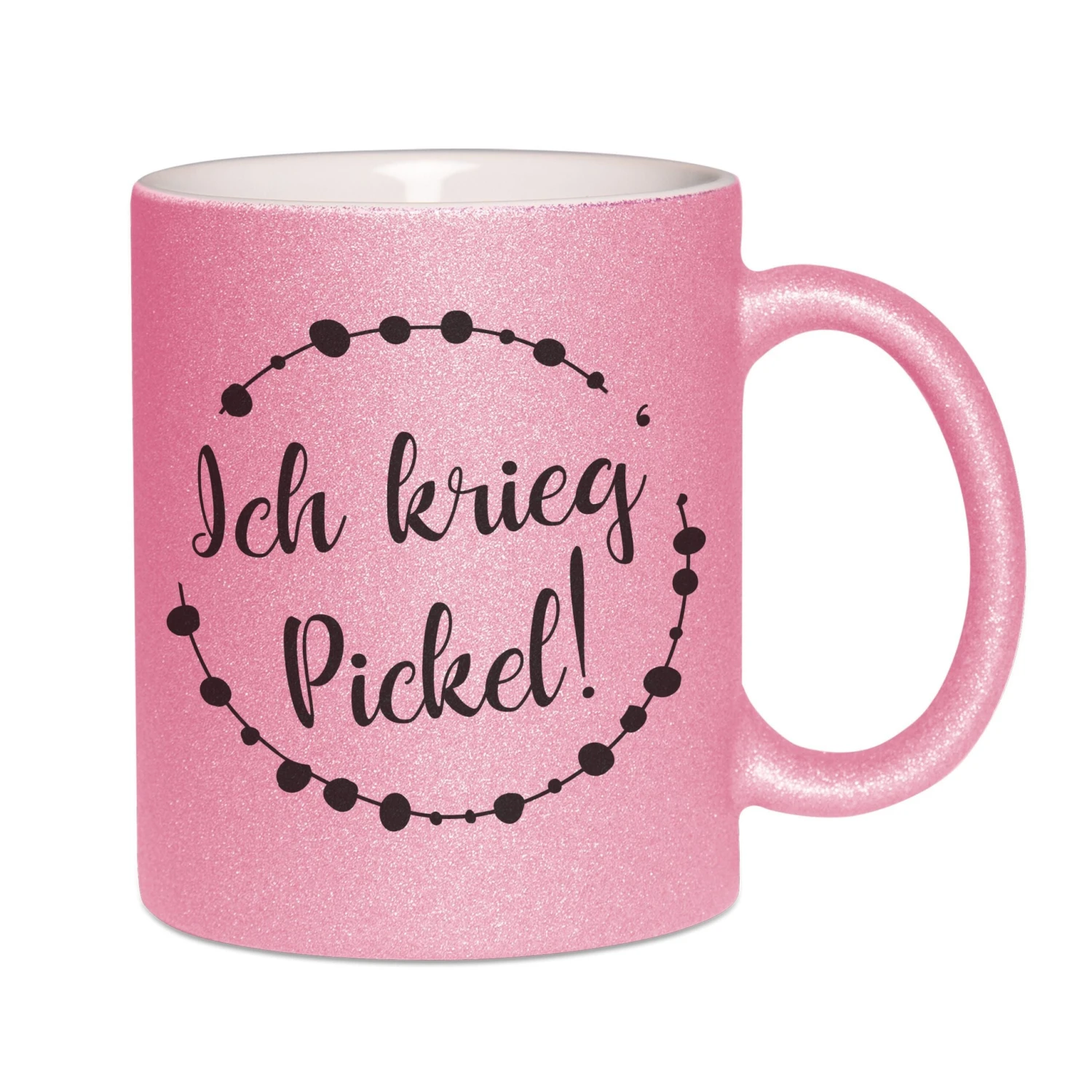 Glitzertasse mit Spruch: Ich krieg Pickel!