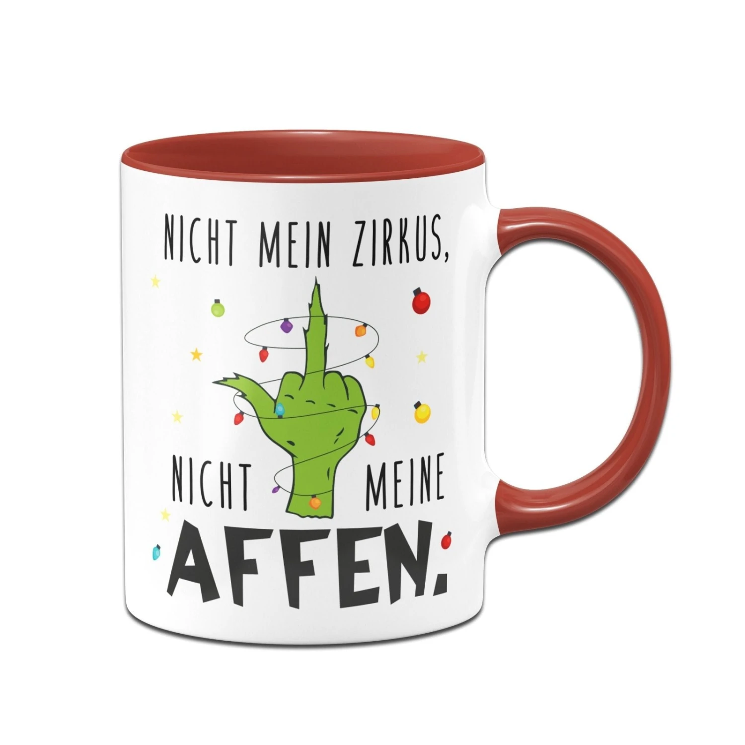 Weihnachtstasse mit Spruch: Nicht mein Zirkus, nicht meine Affen. 🖕⭐ (Grinch)