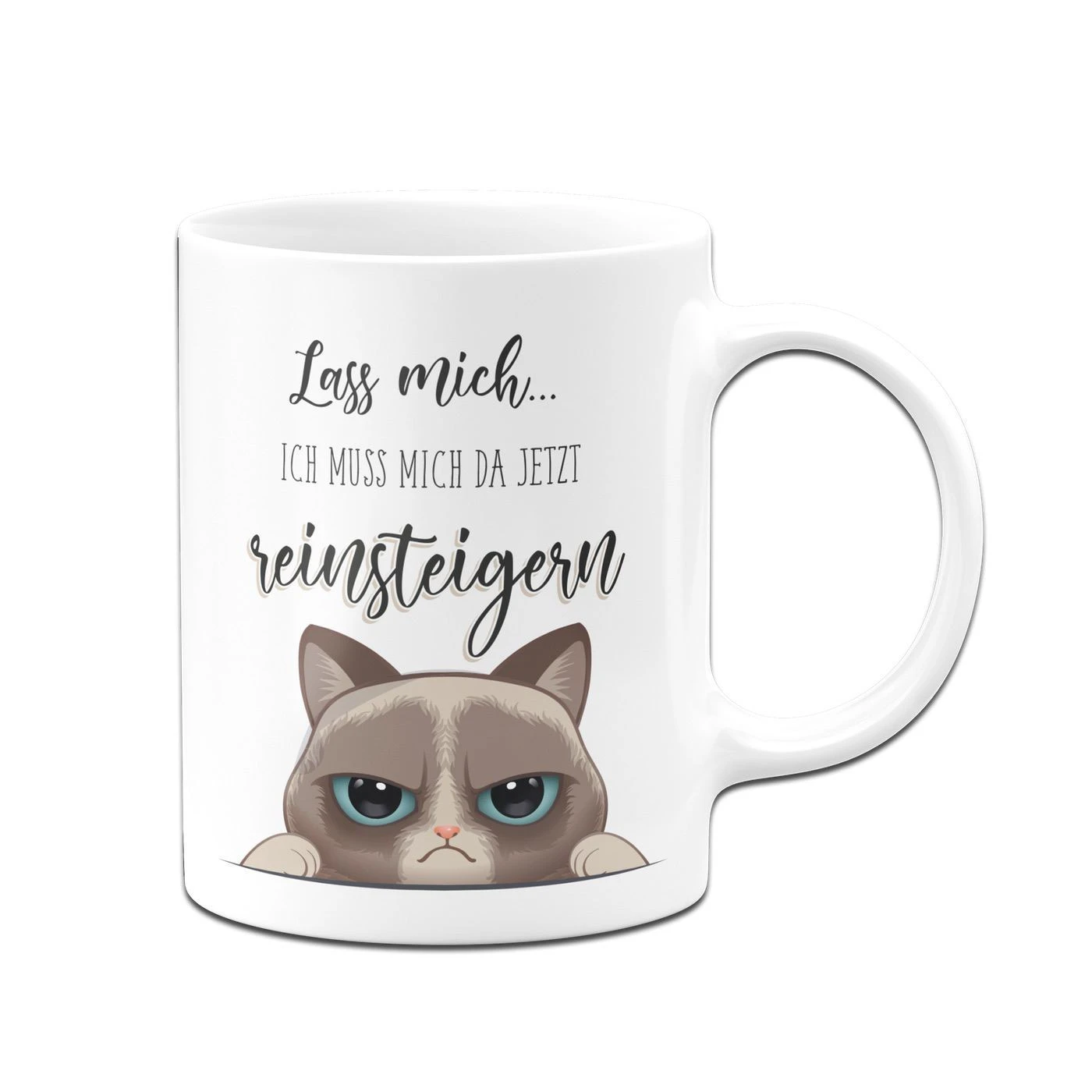 Katzen Tasse mit Spruch: Lass mich… Ich muss mich da jetzt reinsteigern 🐱