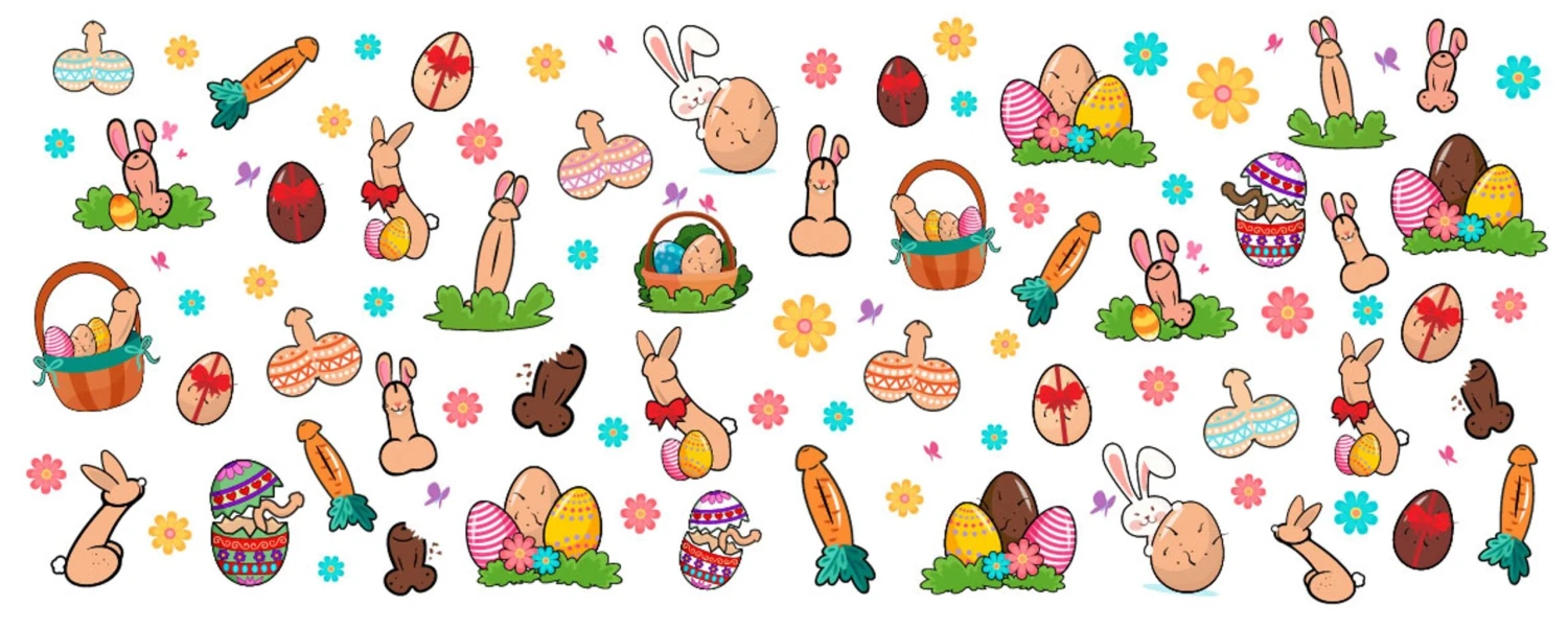 Oster-Tasse „Easter-Cock-Penis“ mit österlichen Penis – Pimmel Motiv und versteckten Eiern (Rundumdruck)