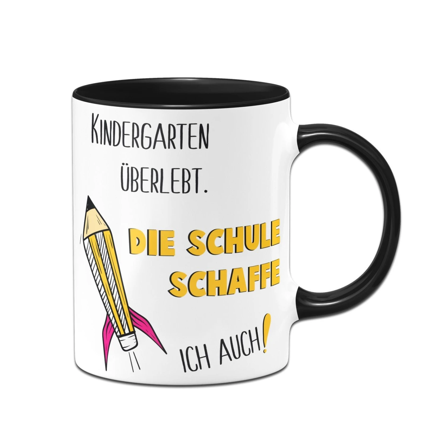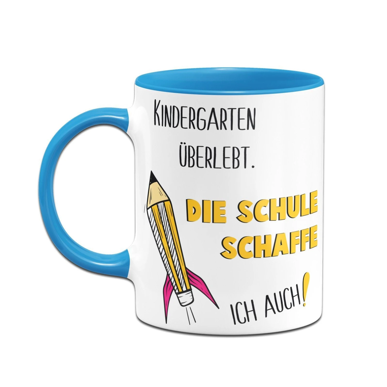 Kindertasse mit Spruch: Kindergarten überlebt. Die Schule schaffe ich auch! 🚀