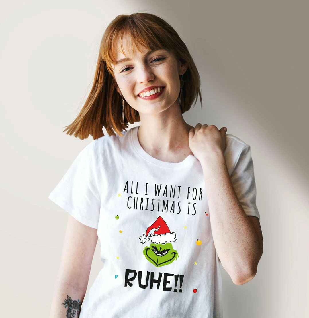 T-Shirt mit Spruch: All I want for Christmas is RUHE! ⭐ (Grinch)