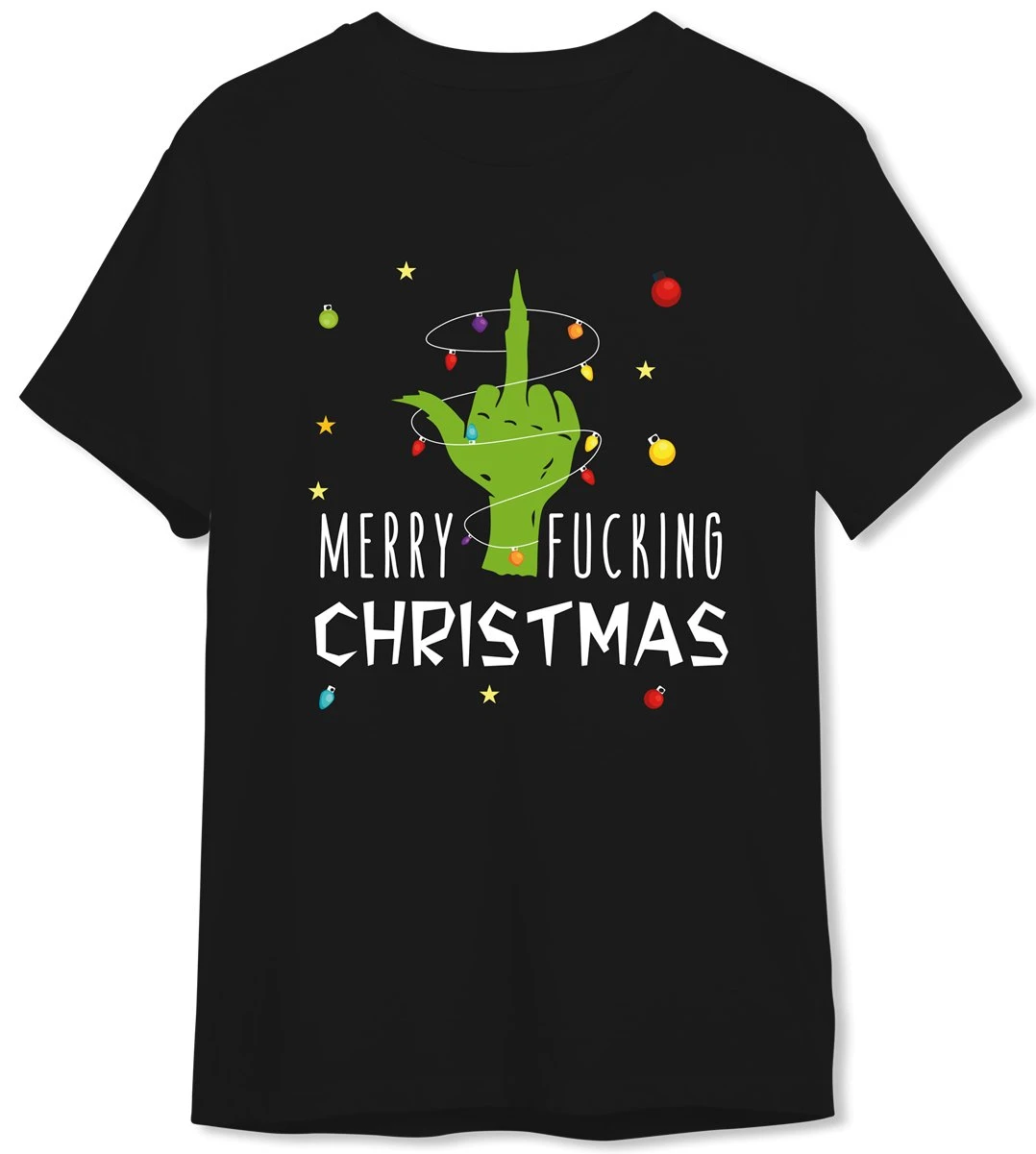 T-Shirt mit Spruch: Merry fucking Christmas 🖕⭐ (Grinch)