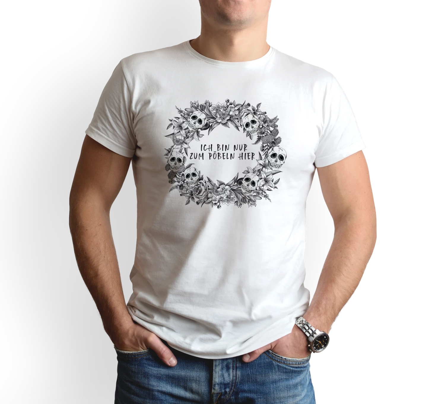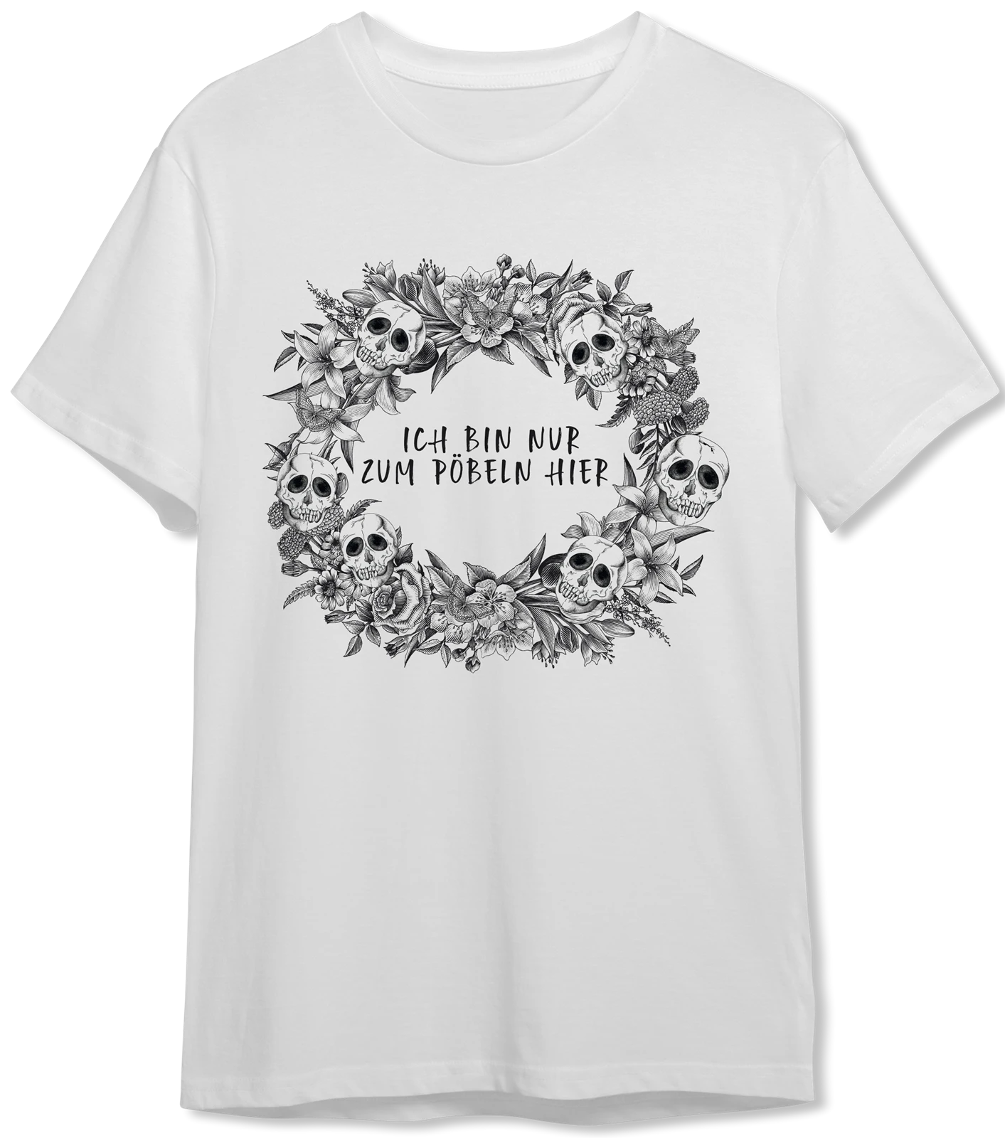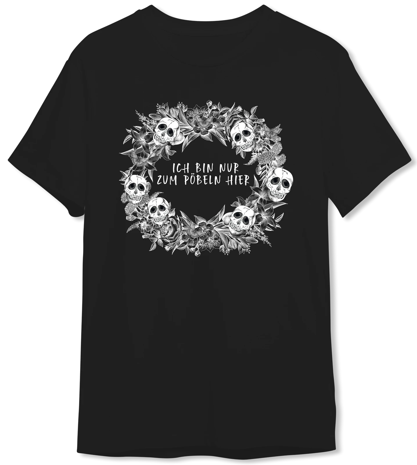 Skull Statement 💀 T-Shirt mit Spruch: Ich bin nur zum Pöbeln hier 💀