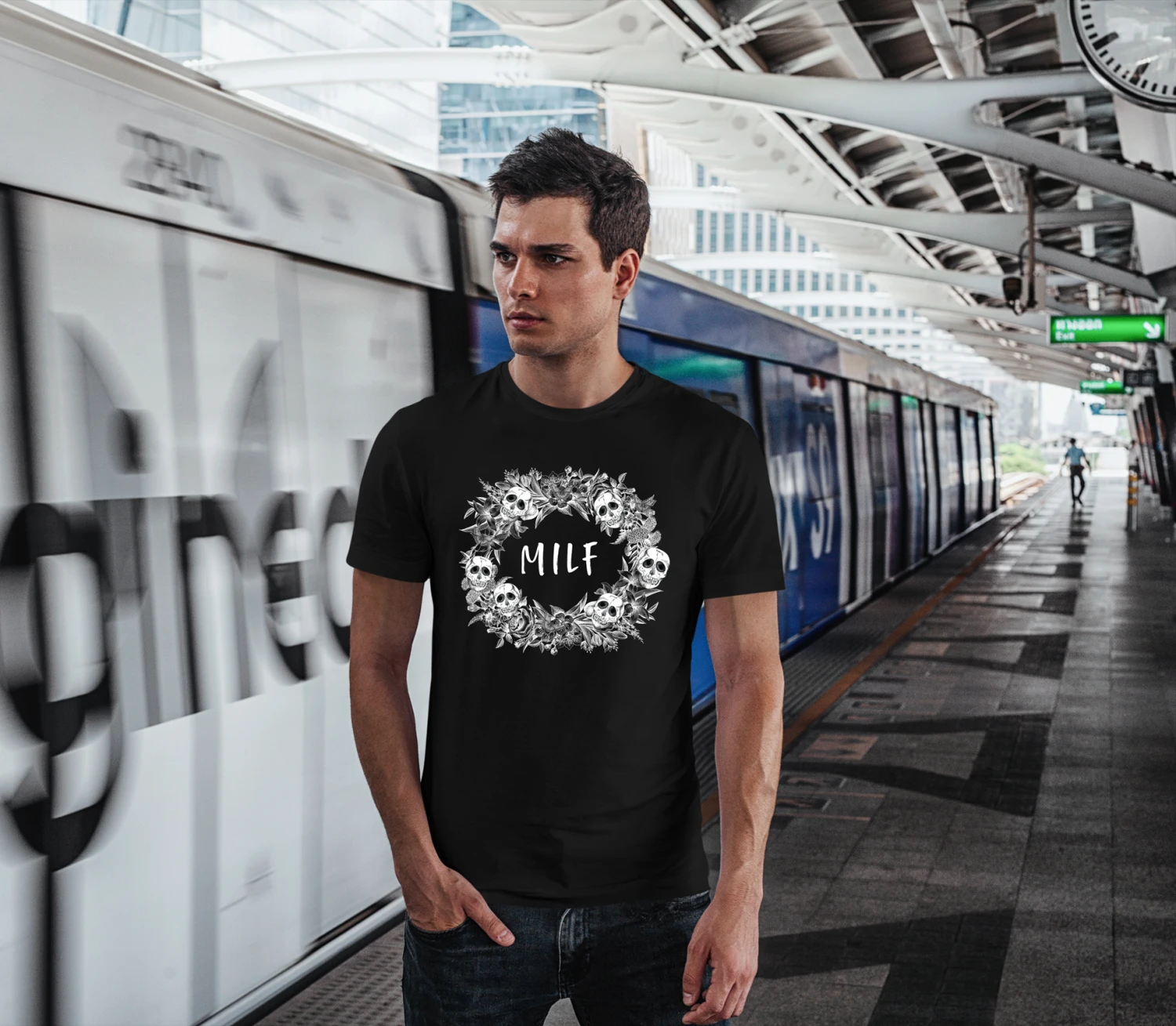 Skull Statement 💀 T-Shirt mit Spruch: Milf 💀
