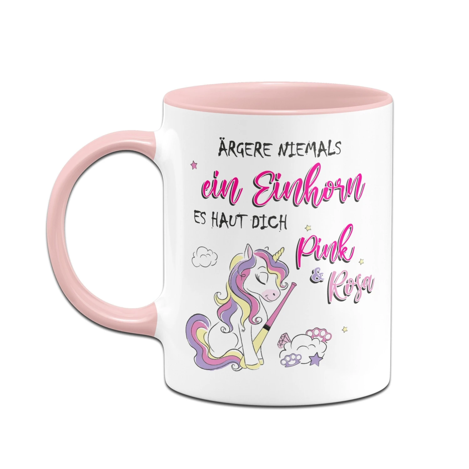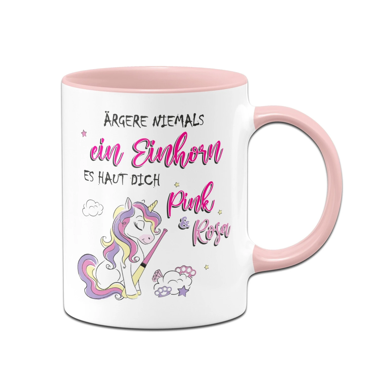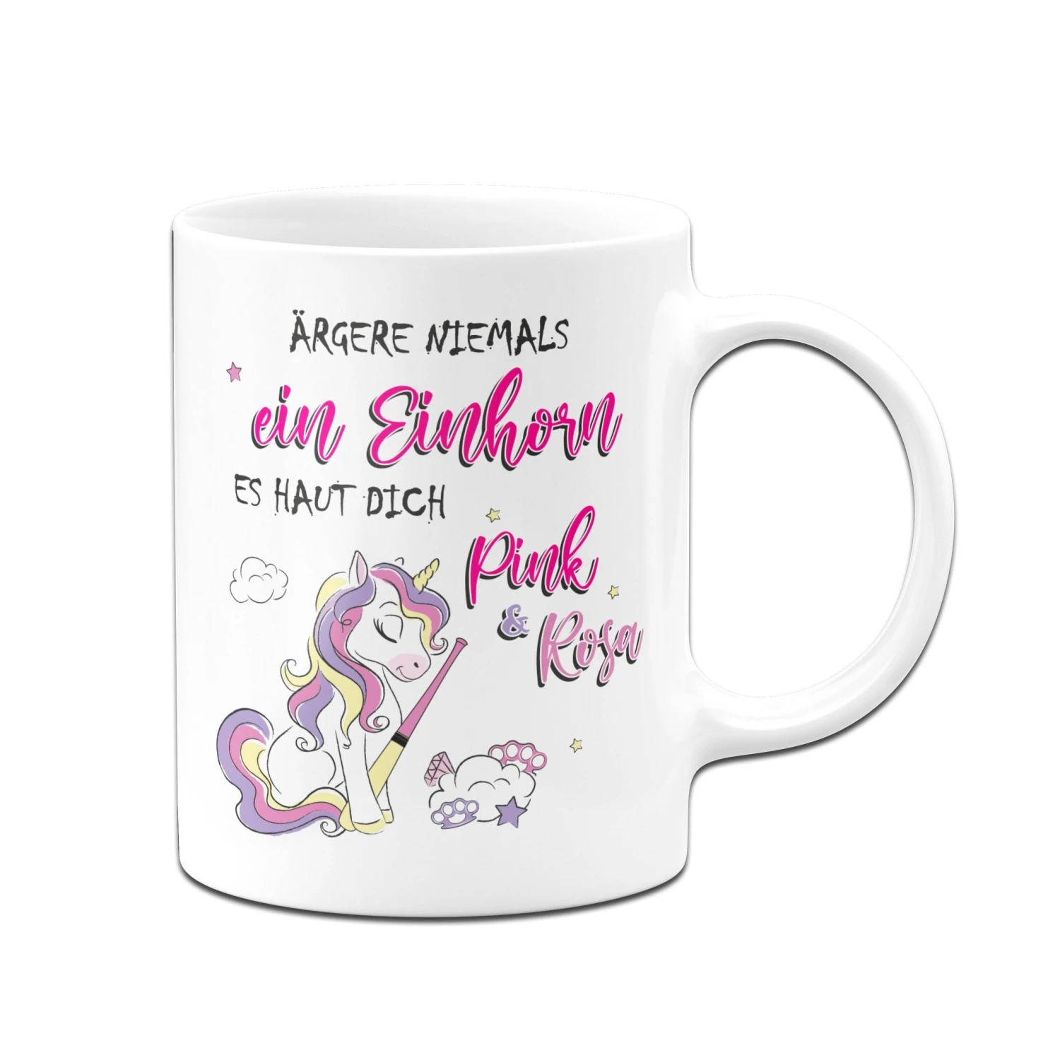 Tasse mit Spruch: Ärgere niemals ein Einhorn 🦄 Es haut dich pink & rosa