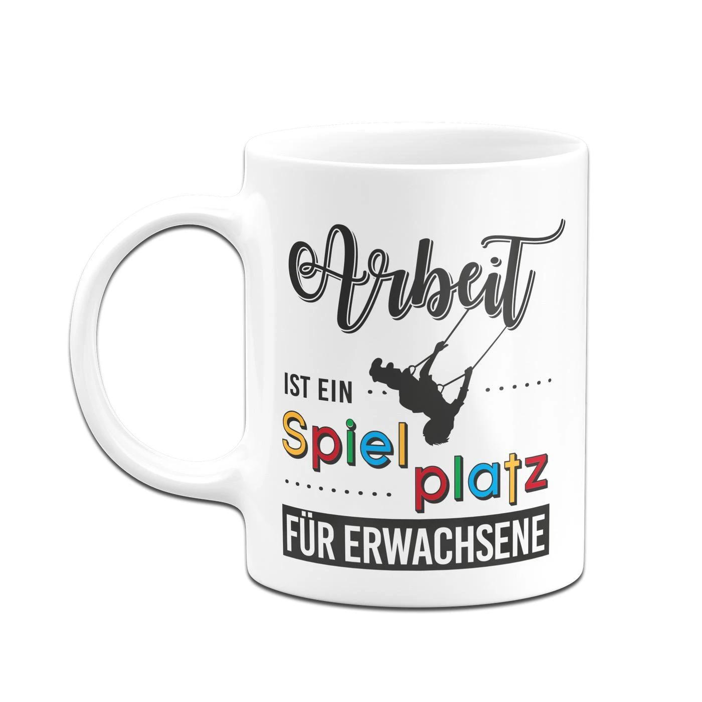 Tasse mit Spruch: Arbeit ist ein Spielplatz für Erwachsene