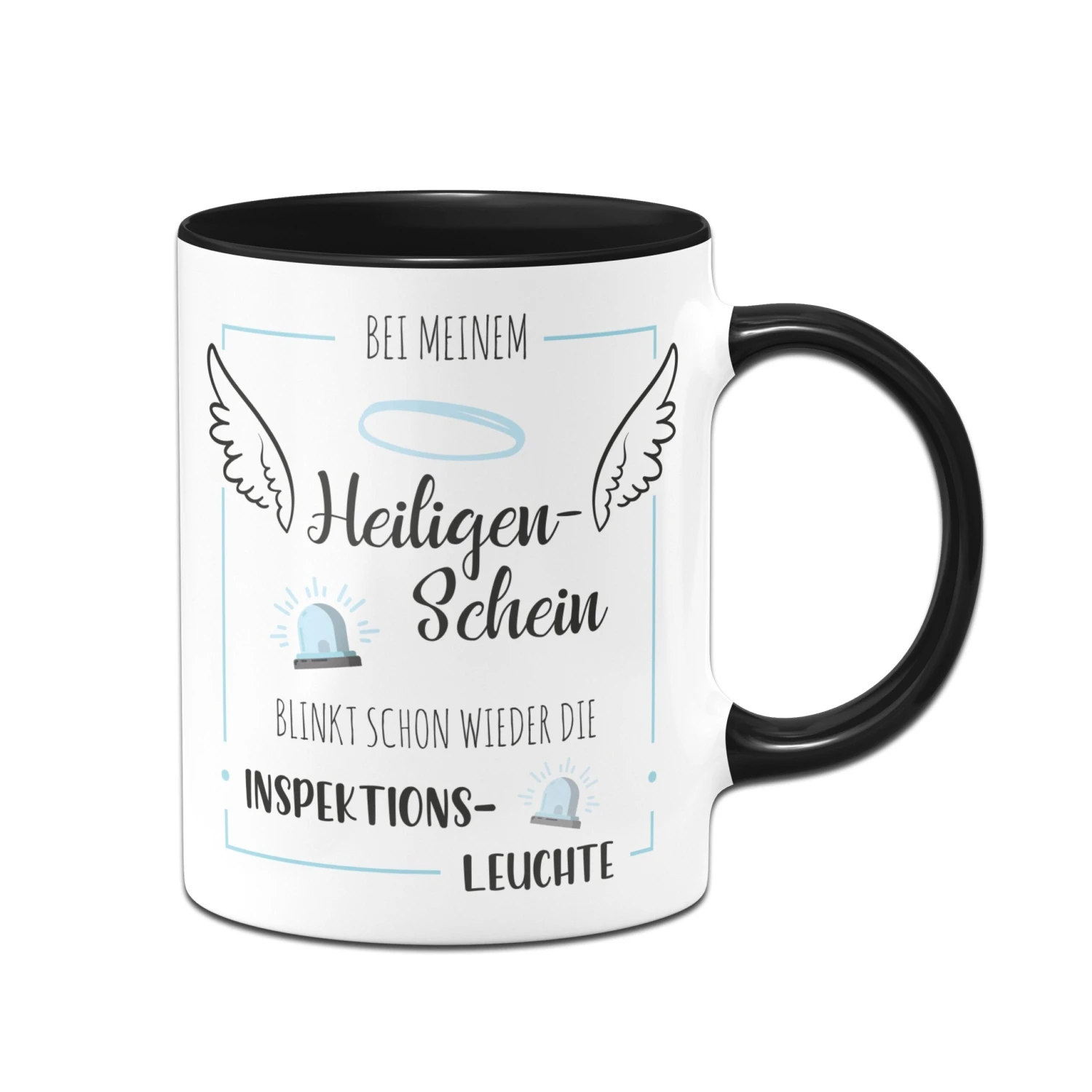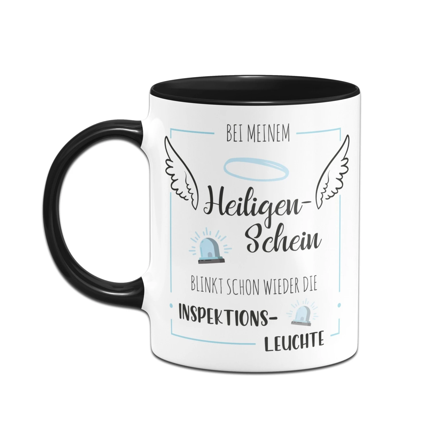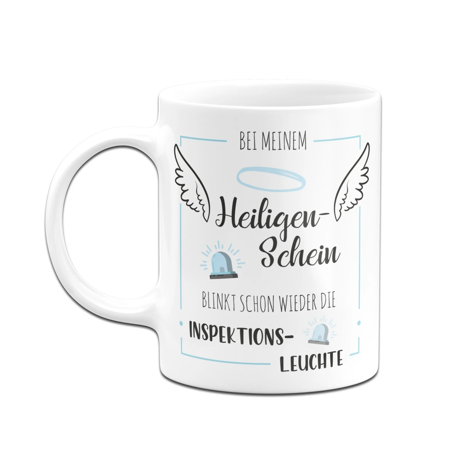 Tasse mit Spruch: Bei meinem Heiligenschein blinkt schon wieder die Inspektionsleuchte. 😇💡