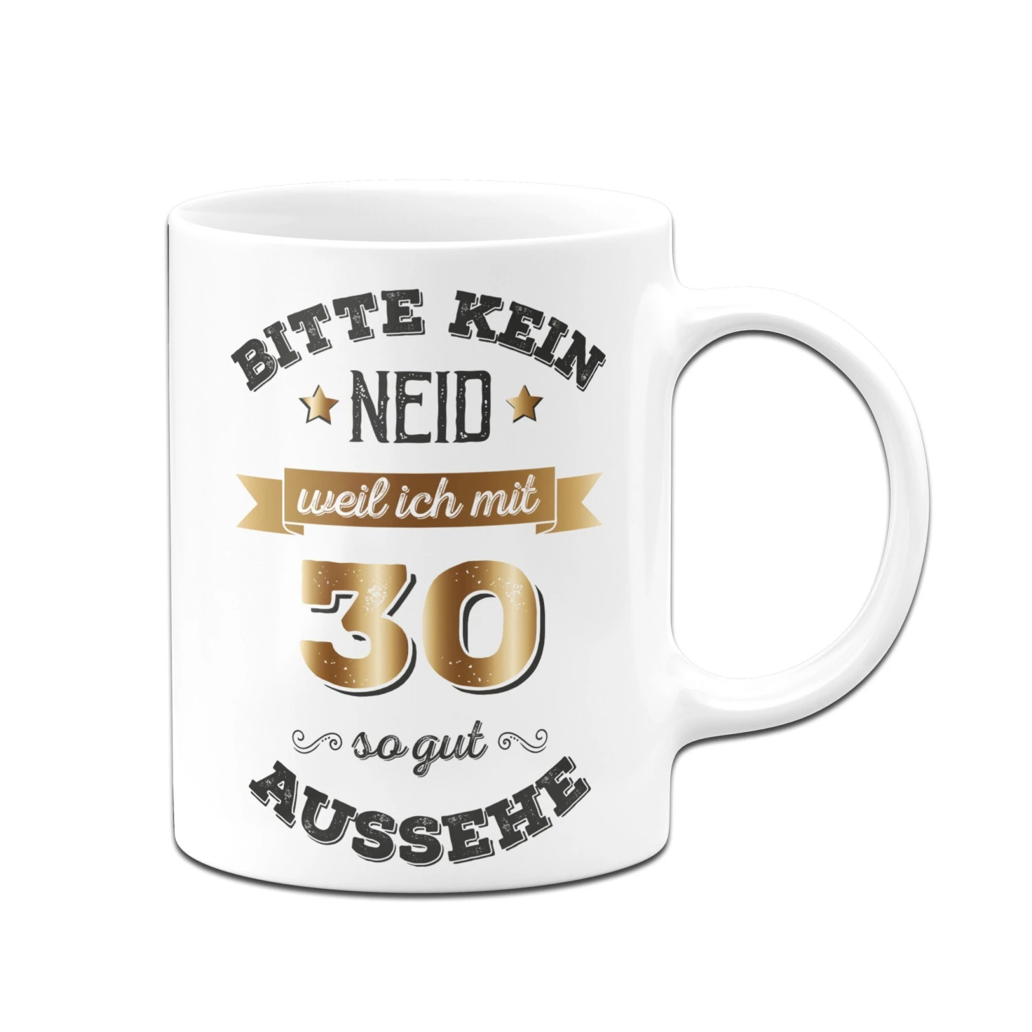 Tasse mit Spruch: Bitte kein Neid, weil ich mit 30 so gut aussehe 🥳
