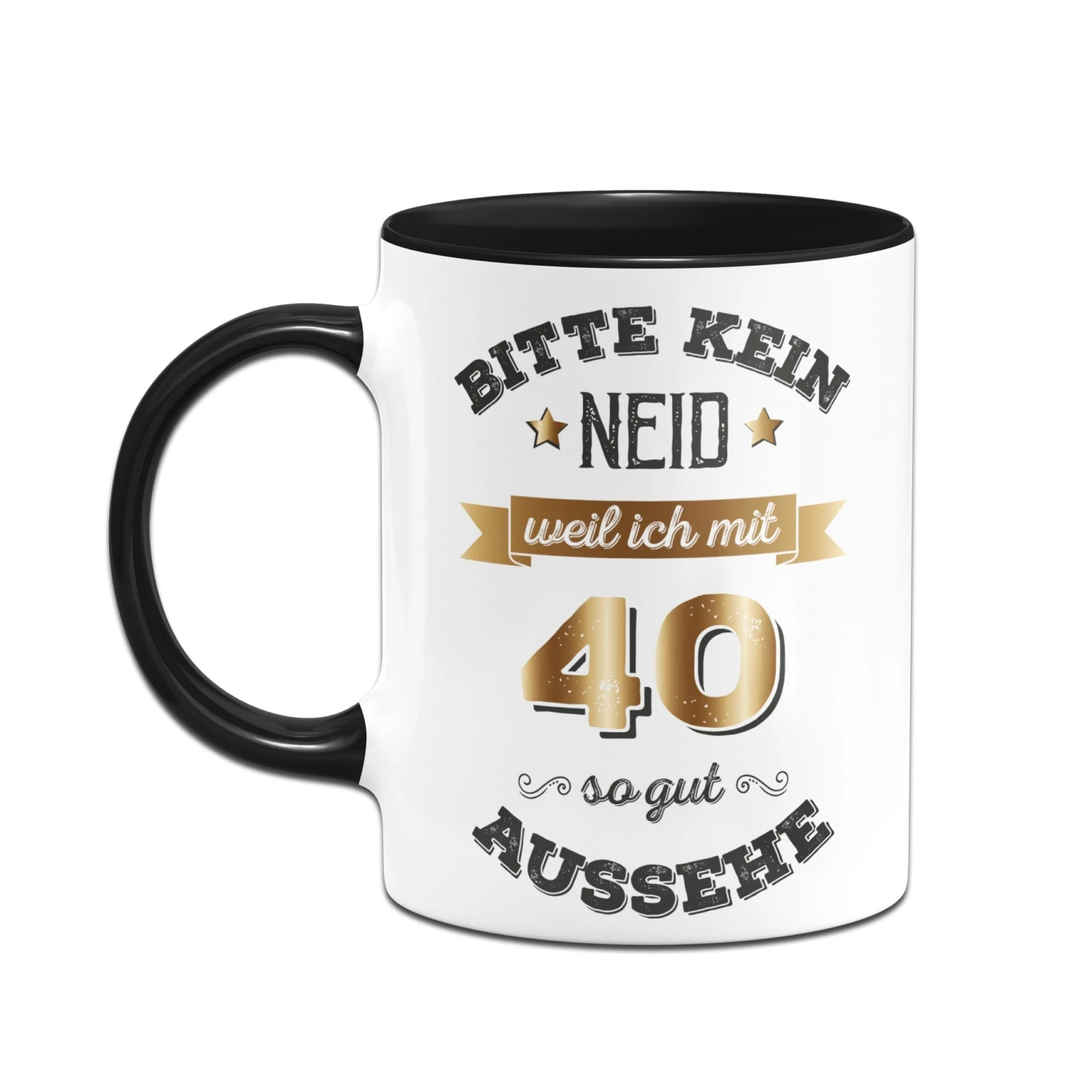 Tasse mit Spruch: Bitte kein Neid, weil ich mit 40 so gut aussehe 🥳