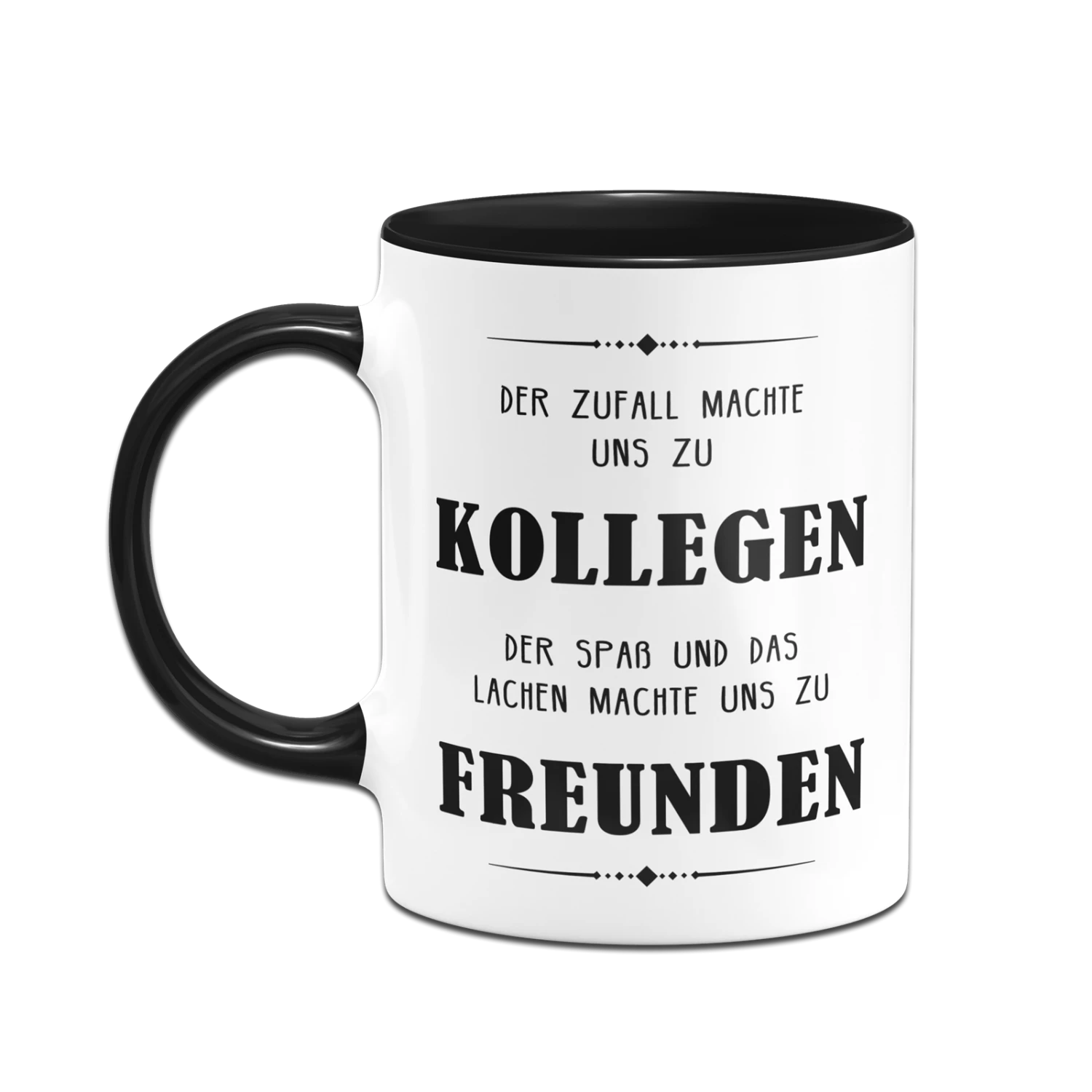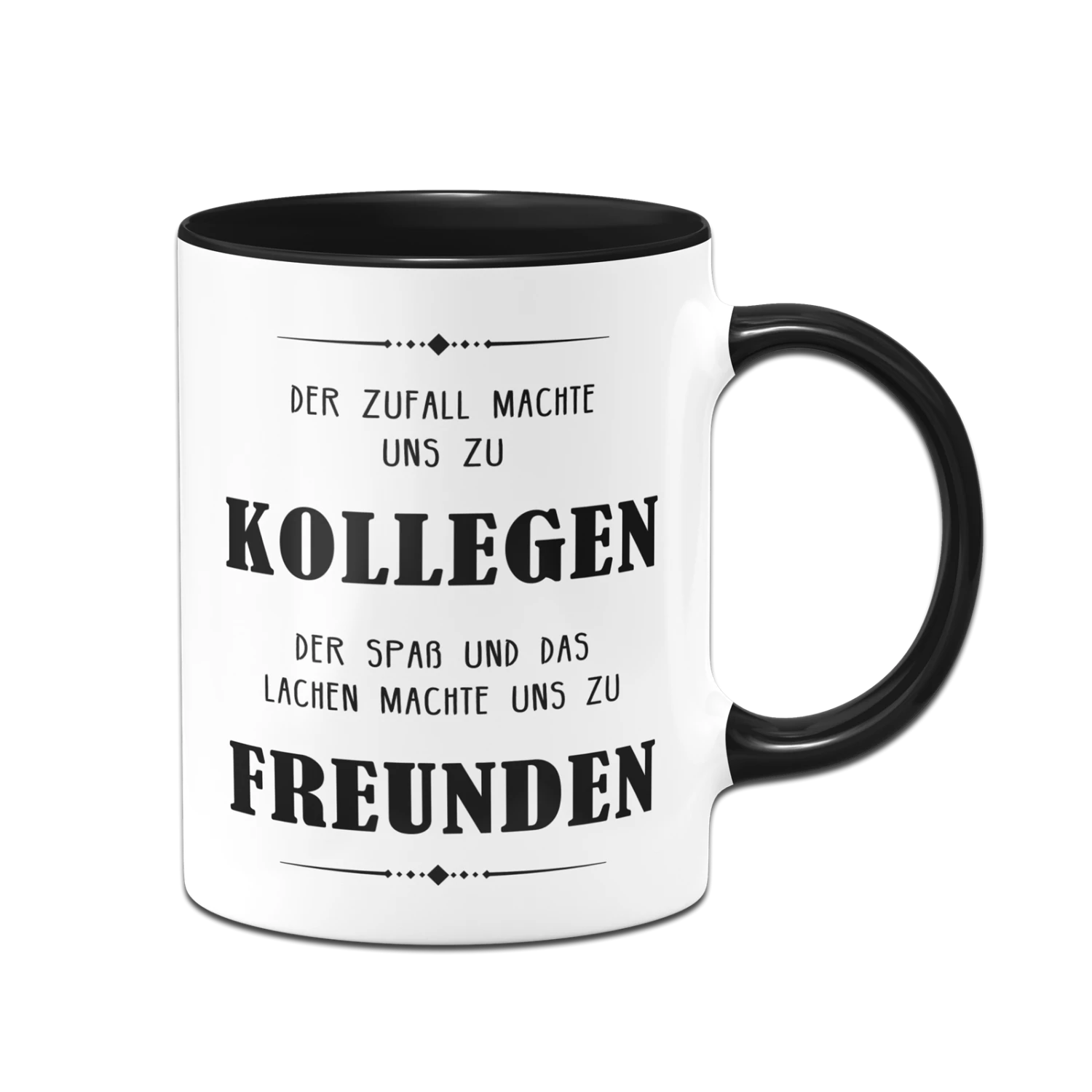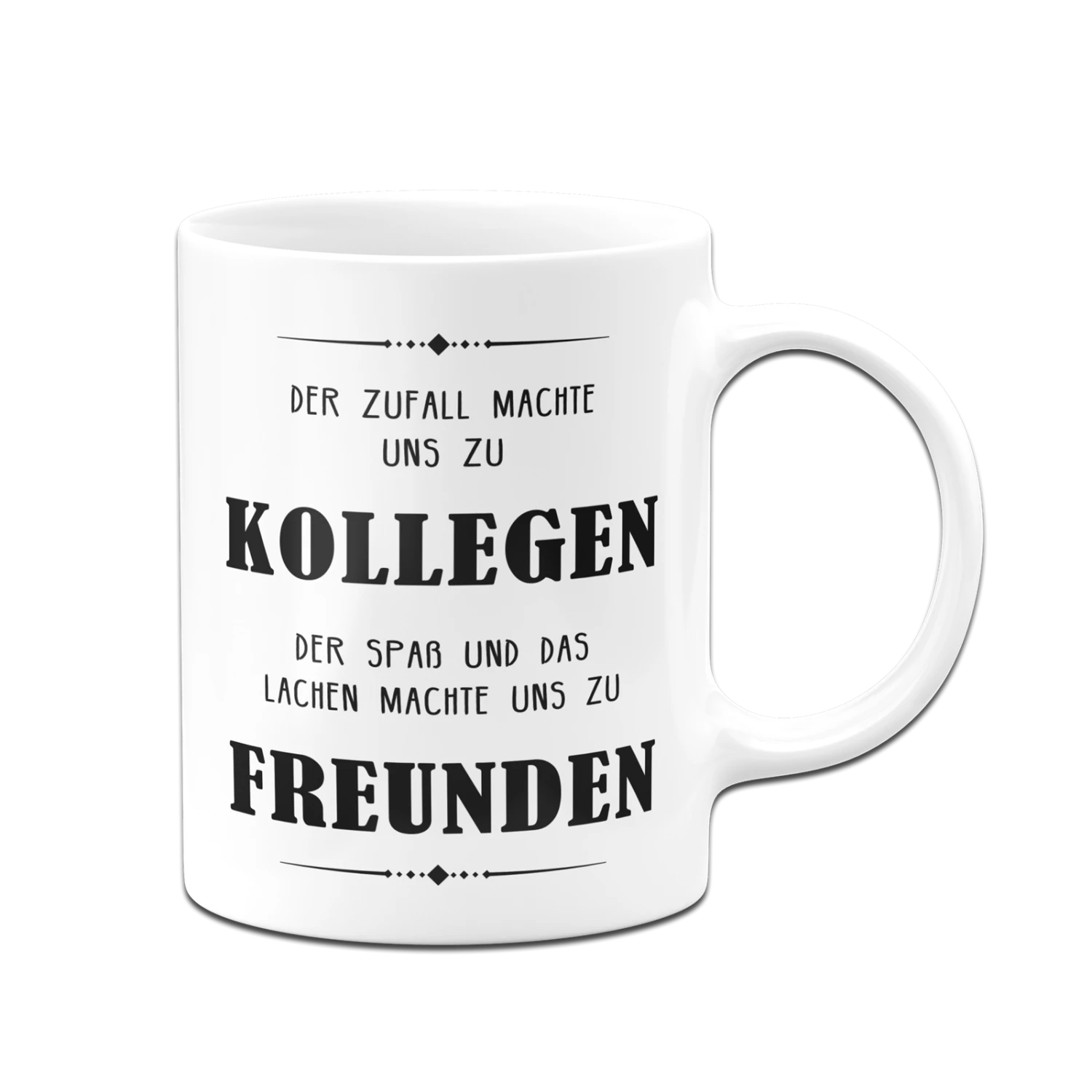 Tasse mit Spruch: Der Zufall machte uns zu Kollegen, der Spaß und das Lachen machten uns zu Freunden.