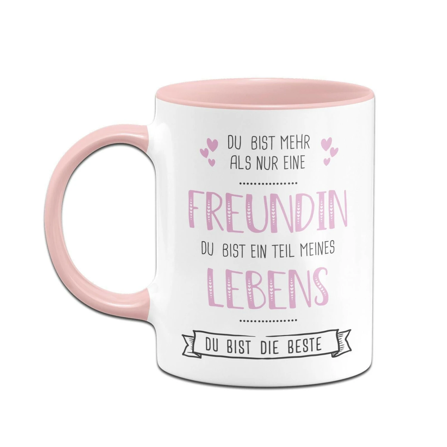 Tasse mit Spruch: Du bist mehr als nur eine Freundin 💕 Du bist ein Teil meines Lebens. Du bist die Beste!