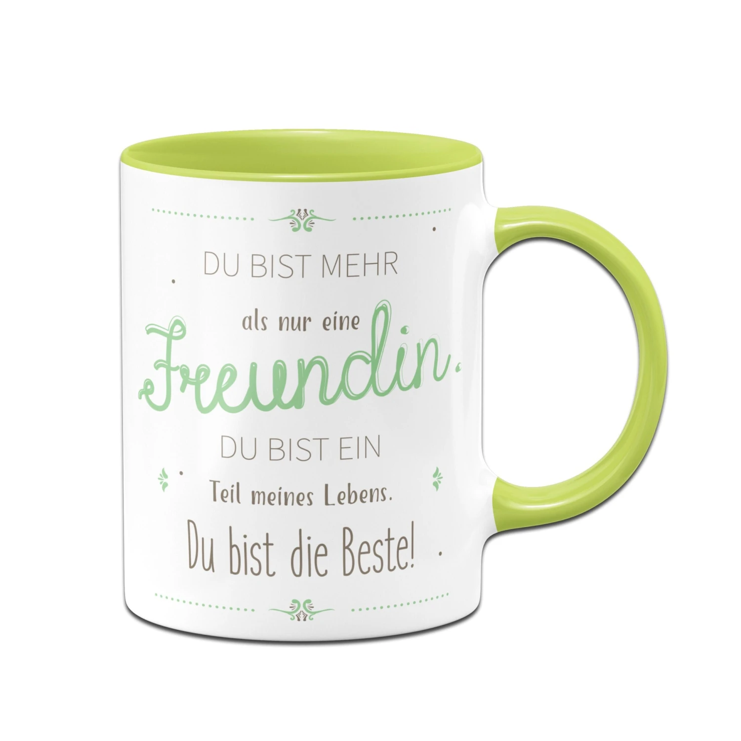 Tasse mit Spruch: Du bist mehr als nur eine Freundin, Du bist ein Teil meines Lebens. Du bist die Beste! 💗