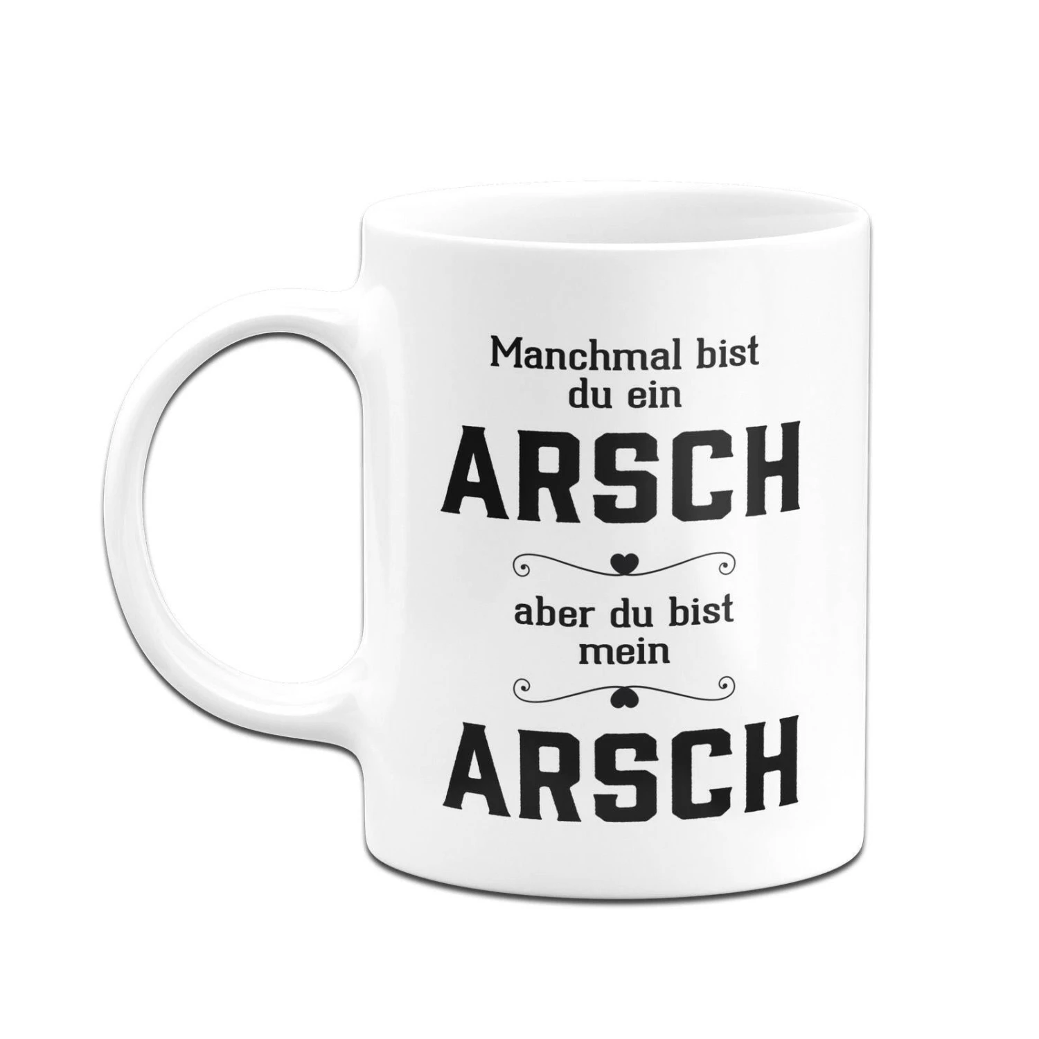 Tasse mit Spruch: Manchmal bist du echt ein Arsch, aber du bist mein Arsch 🖤