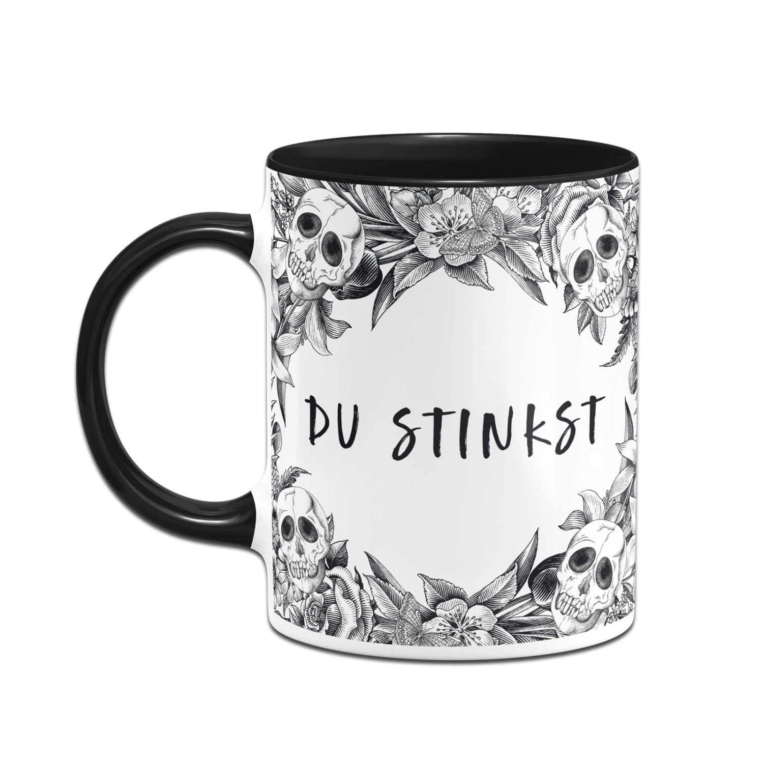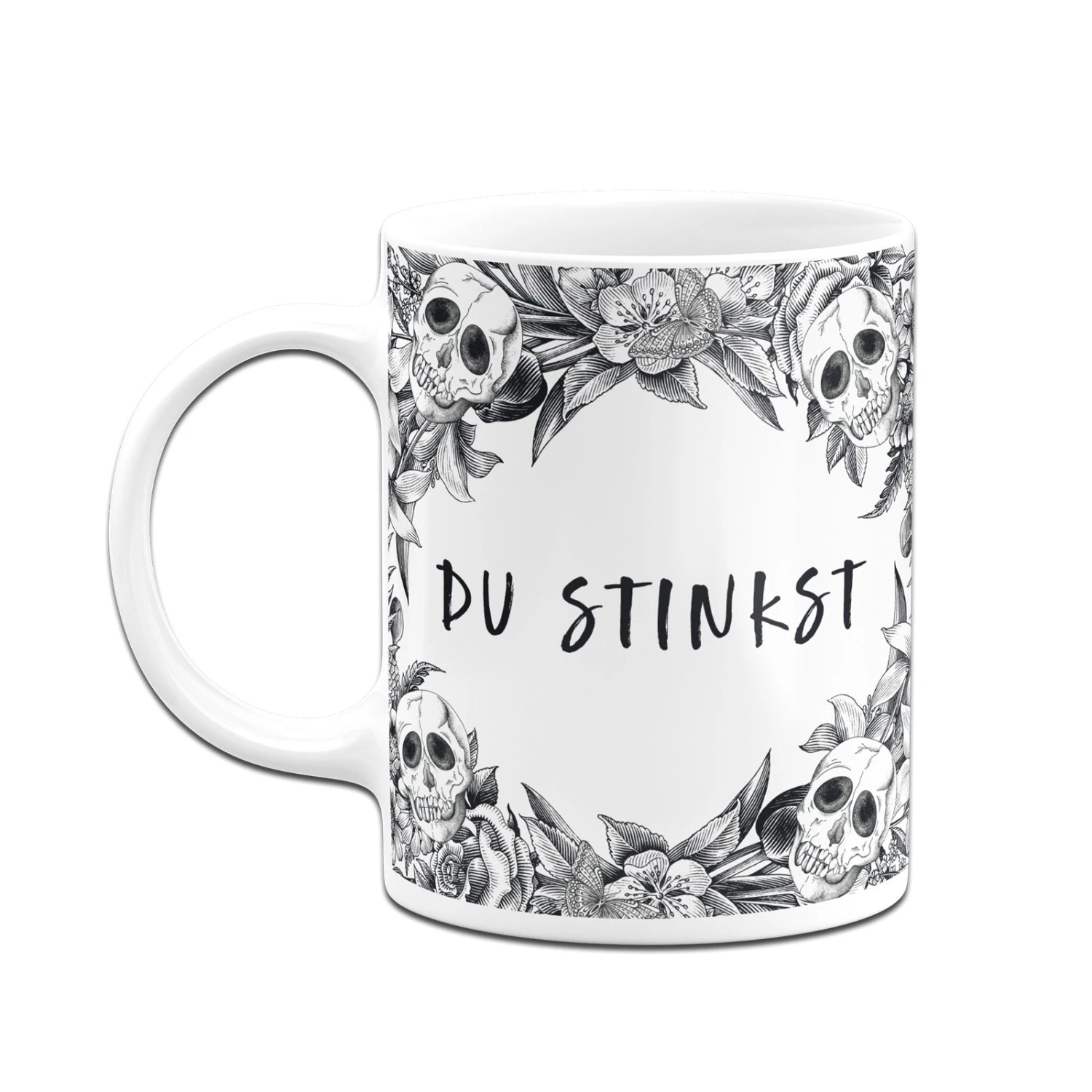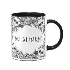 Skull Statement 💀 Totenkopf Tasse mit Spruch: Du stinkst (im Rundumdruck)