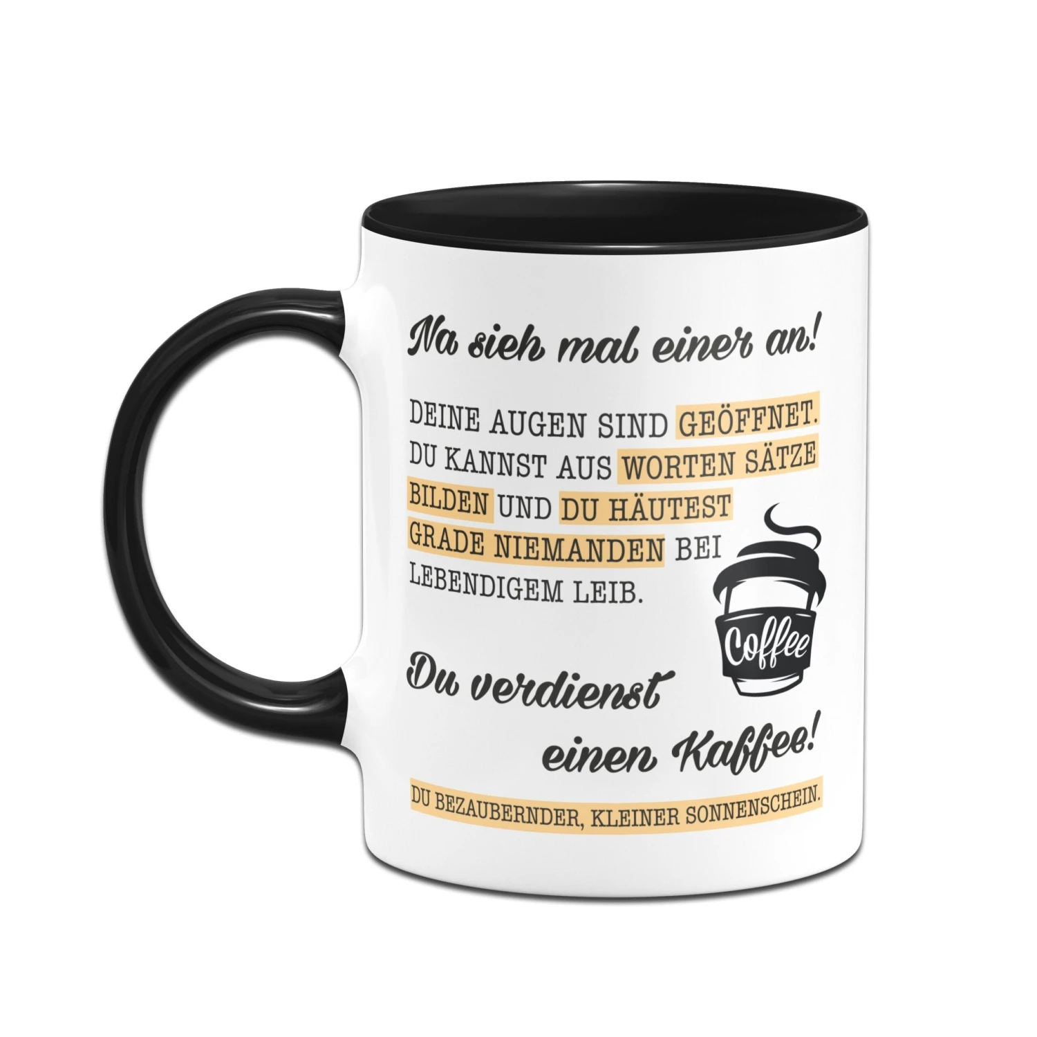 Hochwertige Keramik Motto-Kaffeetasse in Komfortgröße: