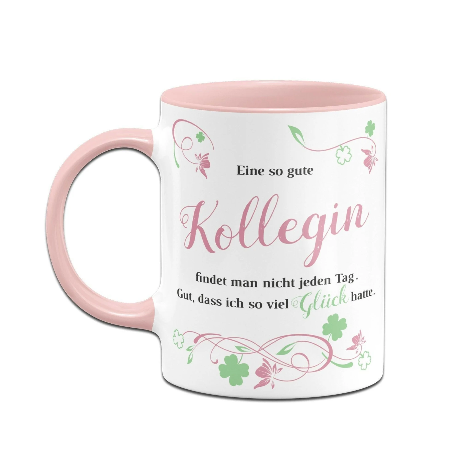 Tasse mit Spruch: Eine so gute Kollegin findet man nicht jeden Tag. Gut, dass ich so viel Glück hatte. 🌸
