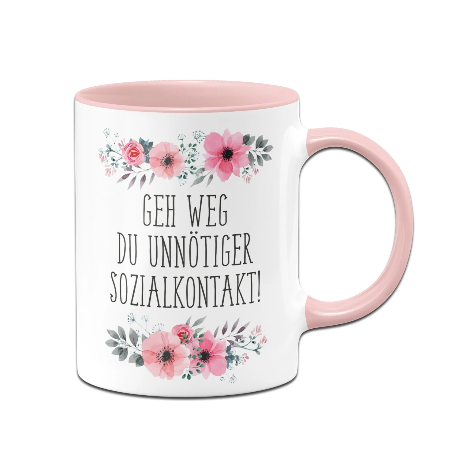Blümchen-Tasse 🌸 mit Spruch: Geh weg du unnötiger Sozialkontakt!