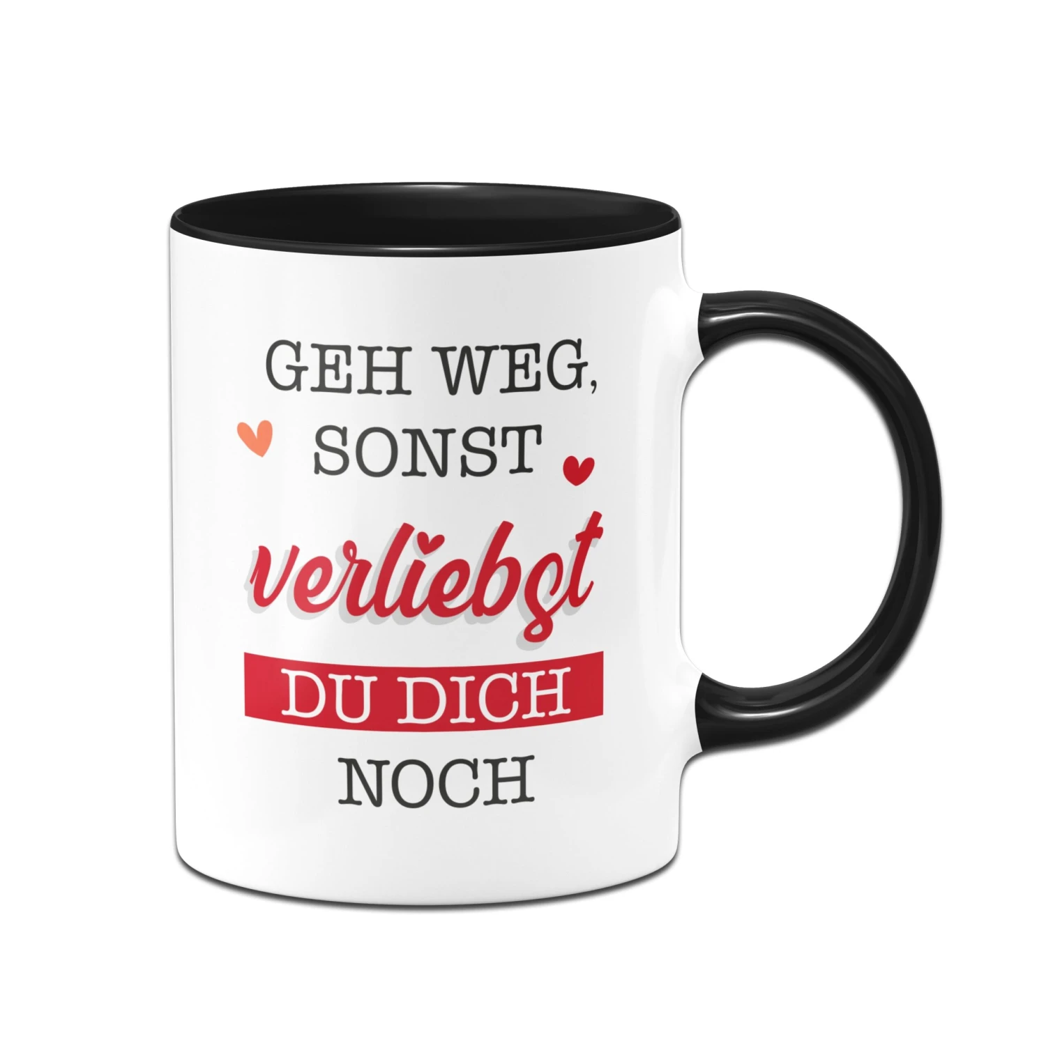 Tasse mit Spruch: Geh weg, sonst verliebst du dich noch. ❤️