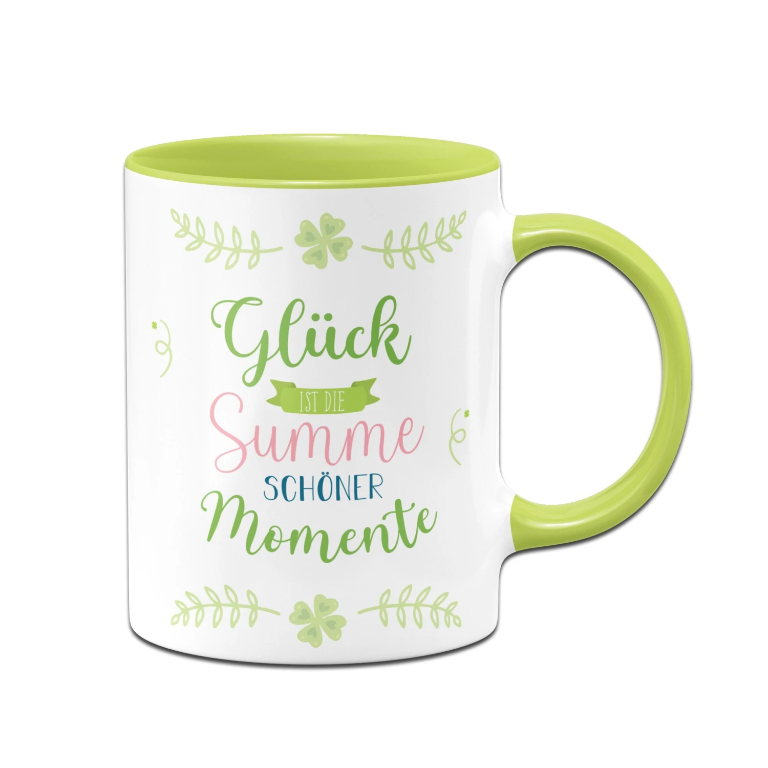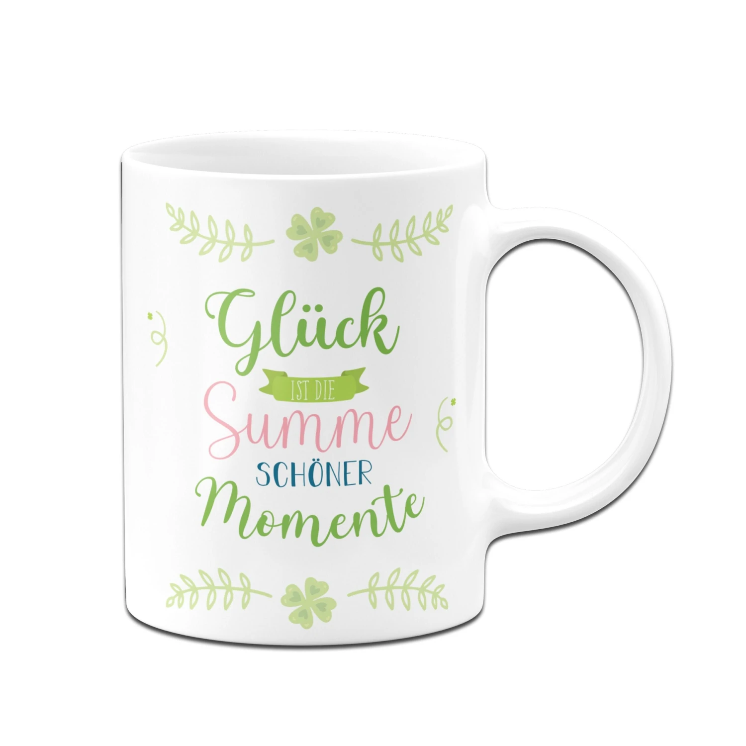 Tasse mit Spruch: Glück ist die Summe schöner Momente 🍀