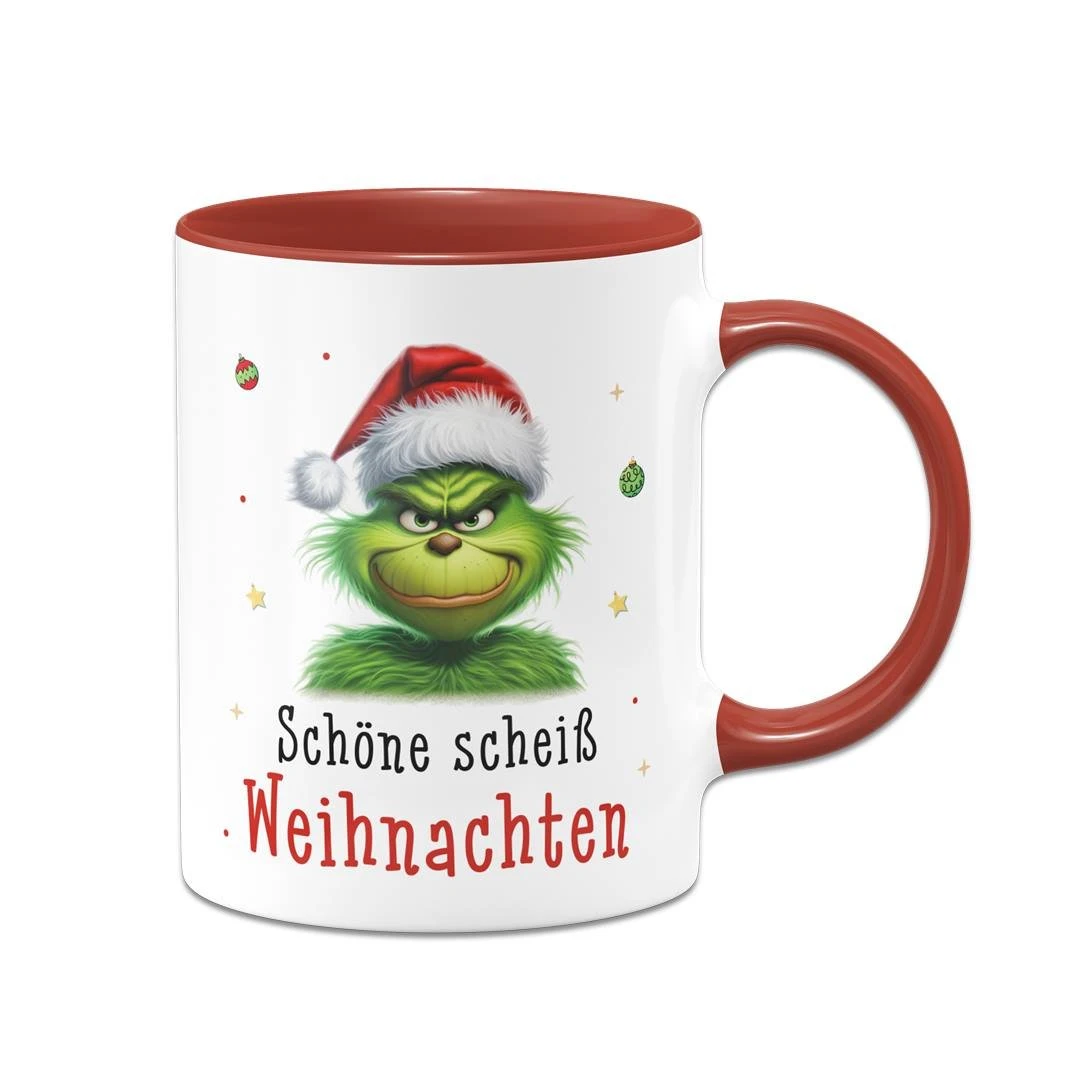 Weihnachtstasse mit Grinch Motiv und Spruch: Schöne scheiß Weihnachten ⭐