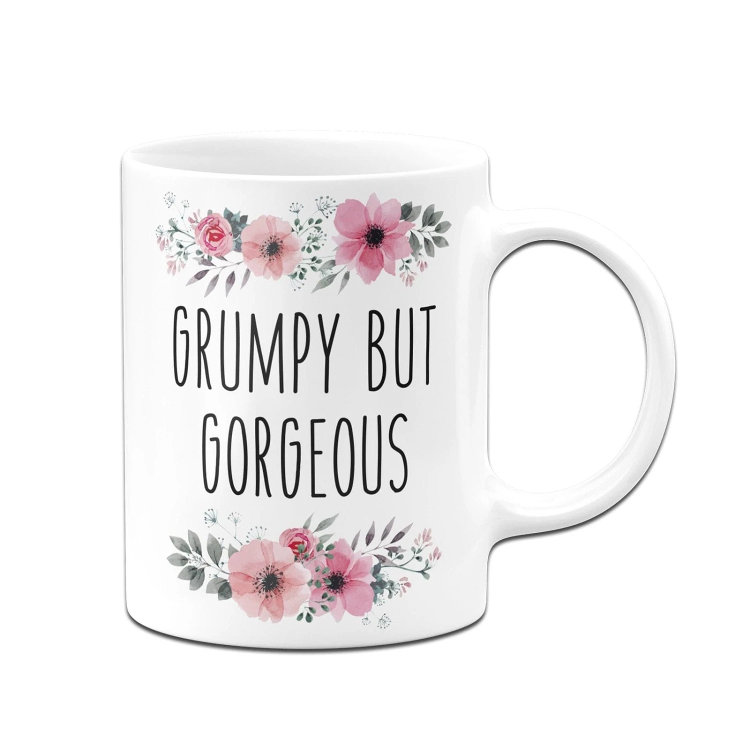 Blümchen-Tasse 🌸 mit Spruch (englisch): Grumpy but Gorgeous
