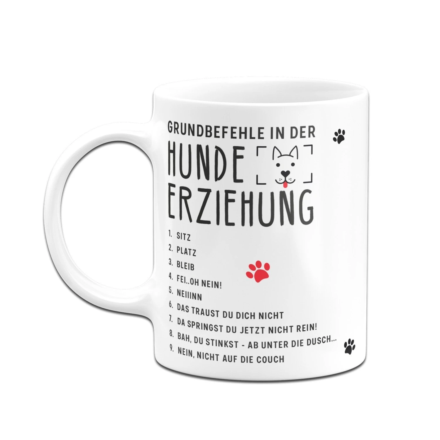 Hunde-Kaffeetasse mit Spruch: Grundbefehle der Hunde-Erziehung 🐾