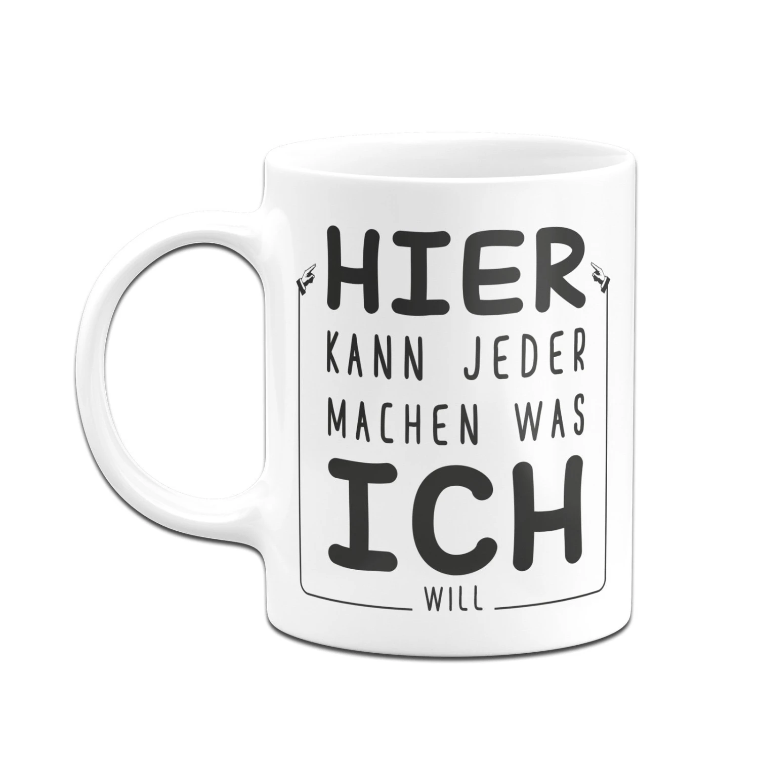 Tasse mit Spruch: Hier kann jeder machen was ich will 👈