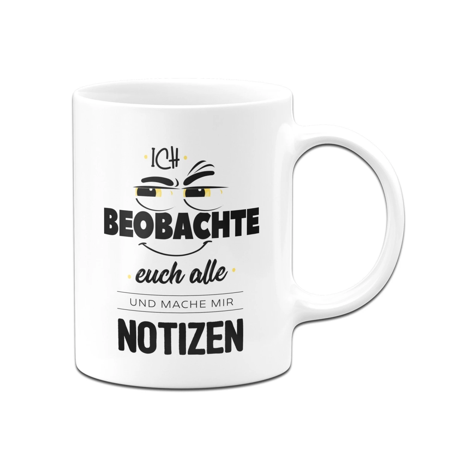 Tasse mit Spruch: Ich beobachte euch alle und mache mir Notizen 👀