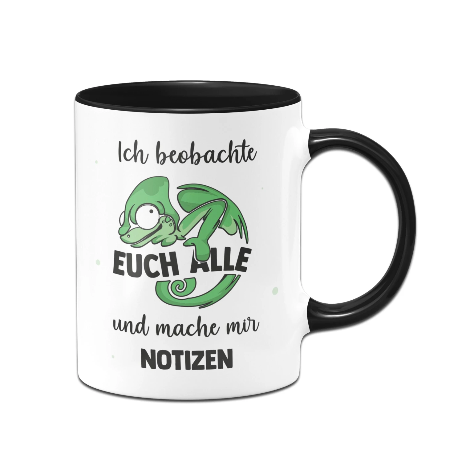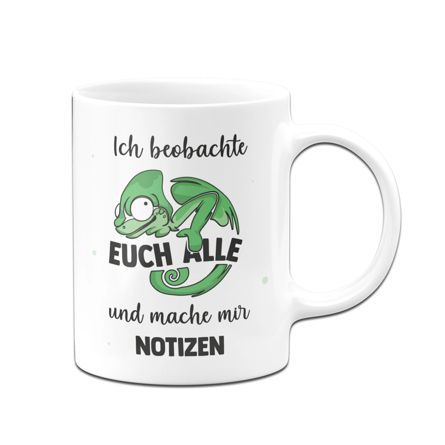 Tasse mit Spruch: Ich beobachte euch alle und mache mit Notizen. – Chamäleon