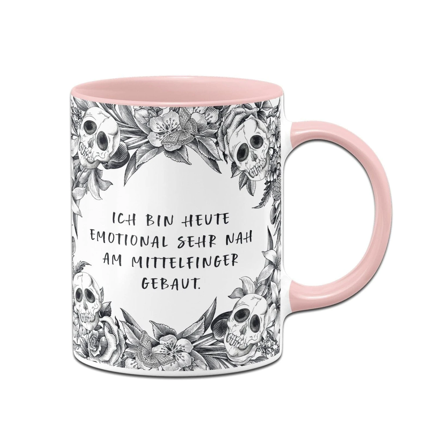 Diese Totenkopf-Tasse mit dem Statement „Ich bin heute emotional sehr nah am Mittelfinger gebaut“ ist das perfekte Accessoire für dich im Büro oder zu Hause, um deine Emotionen auf humorvolle Weise auszudrücken. Hergestellt aus hochwertigem Keramikmaterial, ist diese Tasse langlebig und spülmaschinenfest für den täglichen Gebrauch. Das auffällige Totenkopf-Design gibt der Tasse eine rebellische Note, während der provokative Spruch zeigt, dass du bereit bist, deine Grenzen zu setzen. Egal, ob du einen stressigen Tag im Büro hast oder einfach nur deine innere Haltung ausdrücken möchtest, diese Tasse ist ein einzigartiges und praktisches Accessoire, das dein Statement auf humorvolle und unvergessliche Weise vermittelt. Ideal als Geschenk für Freunde oder Familienmitglieder, die deine Persönlichkeit schätzen und einen Sinn für Humor haben. Zeige der Welt, dass du heute emotional sehr nah am Mittelfinger gebaut bist, mit dieser coolen Totenkopf-Tasse!