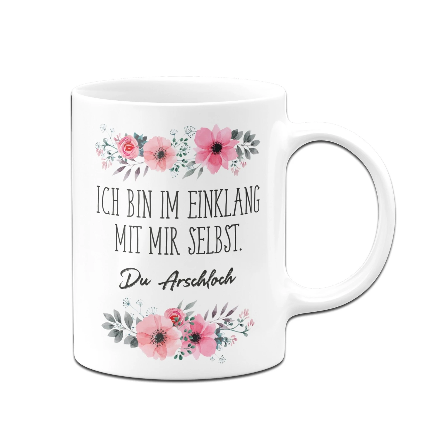 Blümchen-Tasse 🌸 mit Spruch: Ich bin im Einklang mit mir selbst. Du Arschloch.