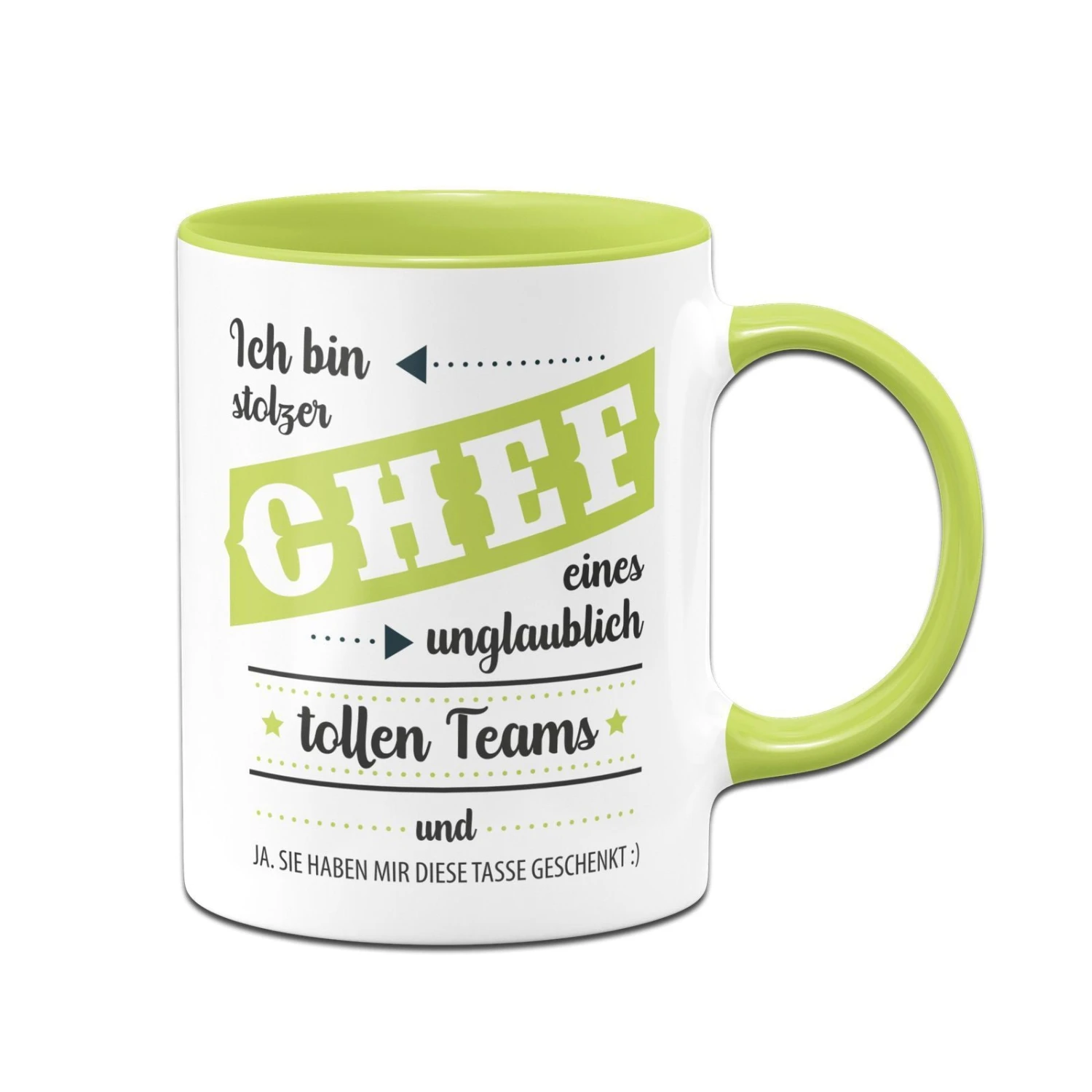 Tasse mit Spruch: Ich bin stolzer Chef eines unglaublich tollen Teams ⭐ und ja, sie haben mir diese Tasse geschenkt 🙂