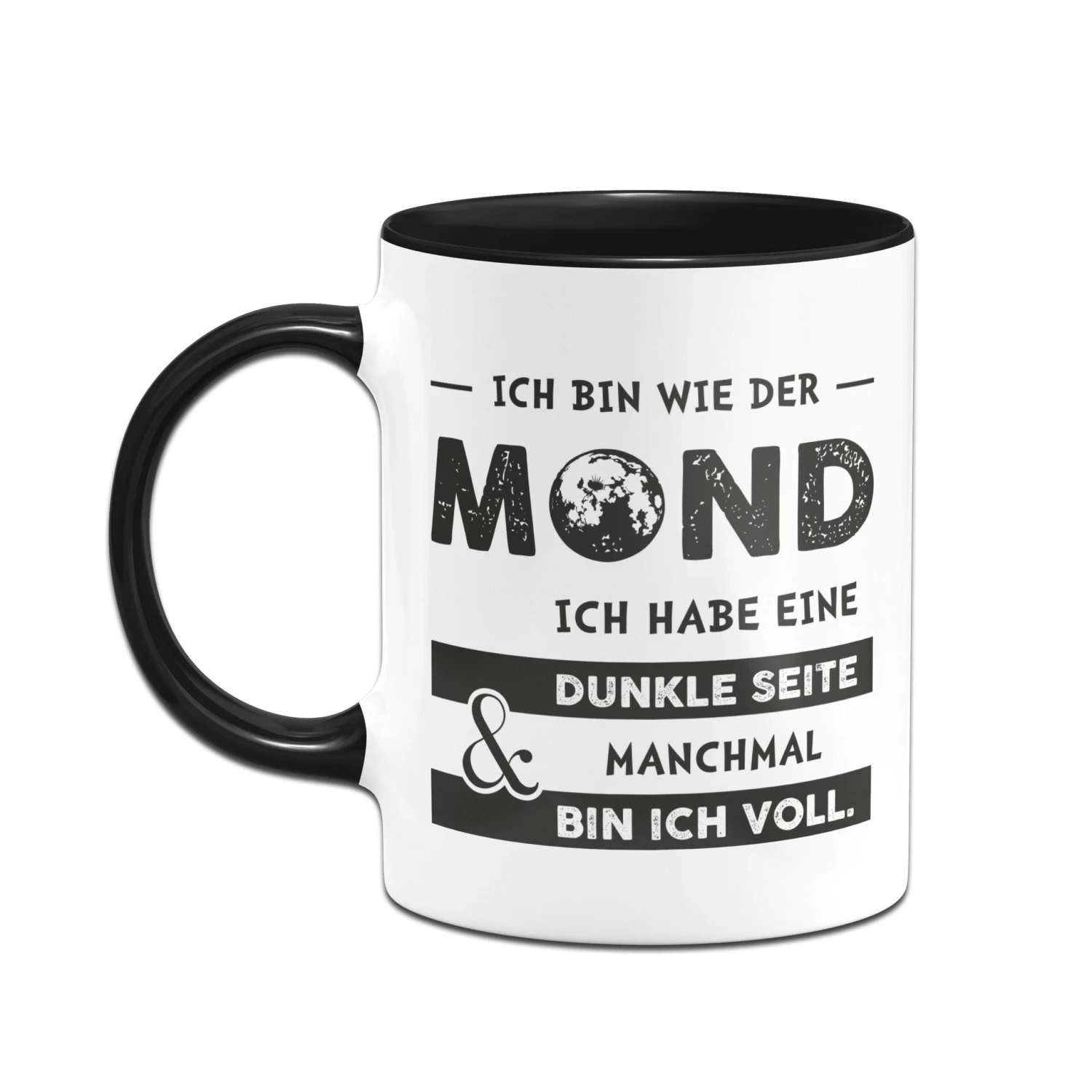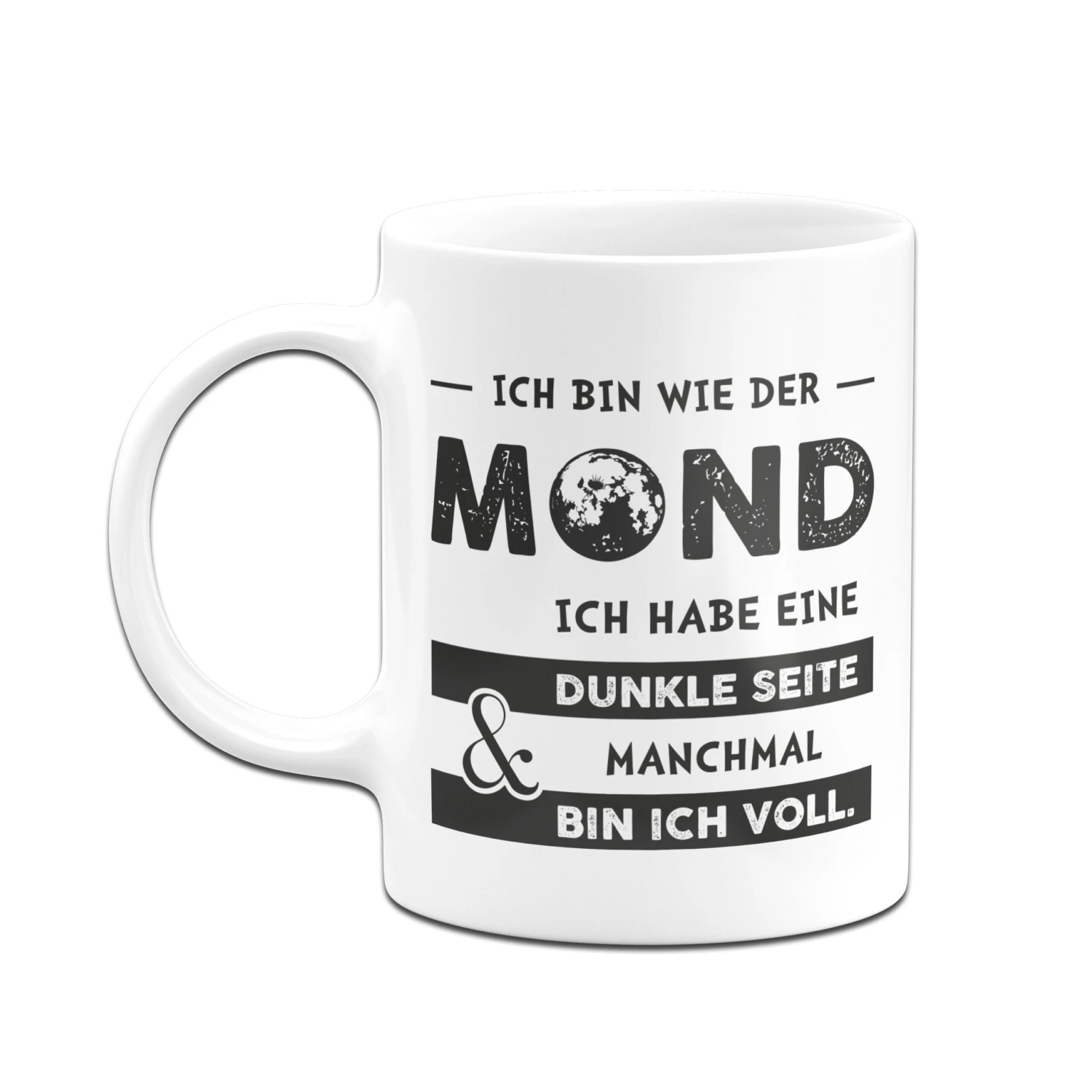 Tasse mit Spruch: Ich bin wie der Mond. Ich habe eine dunkle Seite und manchmal bin ich voll. 🌘