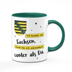 Lustige Tasse mit Spruch: Ich komme aus Sachsen, damit bin ich automatisch cooler als Du.