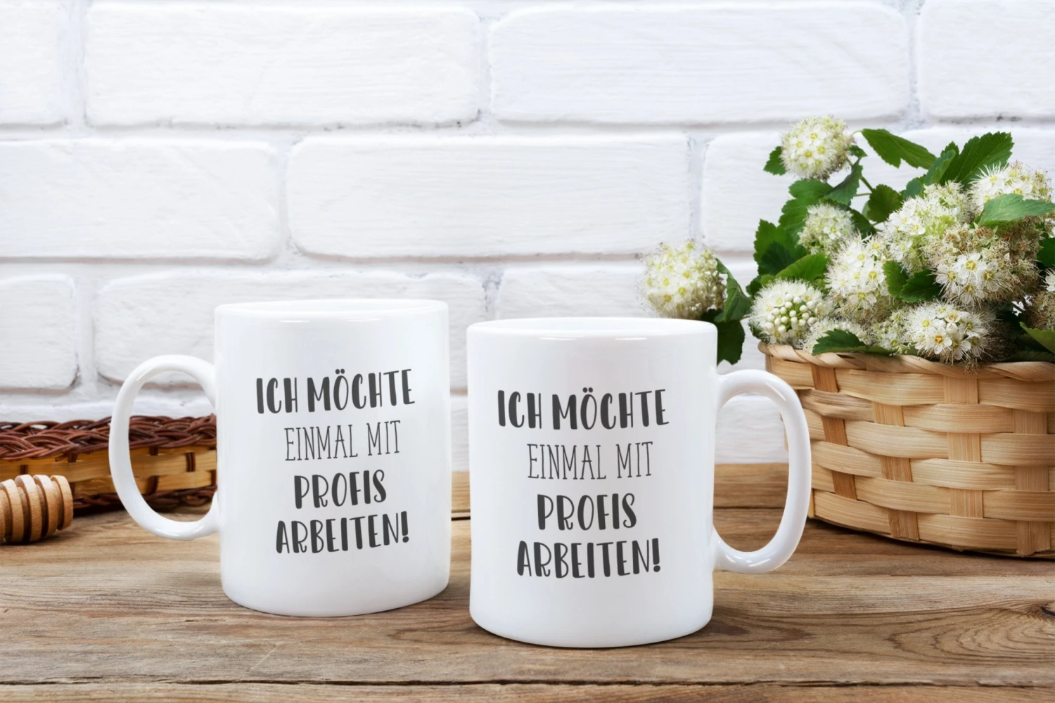🤍 Pure Statement 🖤 Tasse mit Spruch: Ich möchte einmal mit Profis arbeiten!