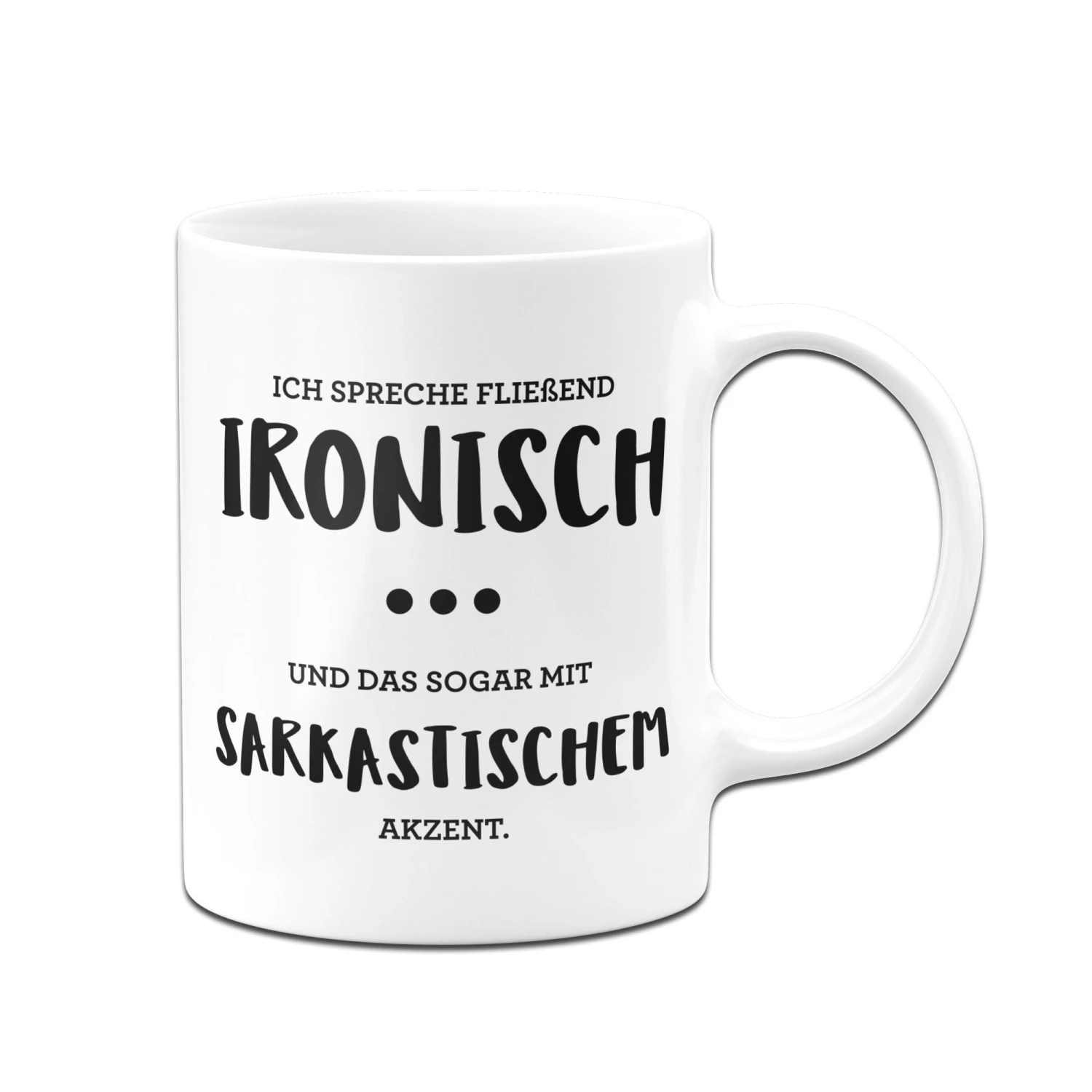 Tasse mit Spruch: Ich spreche fließend Ironisch mit Sarkastischen Akzent