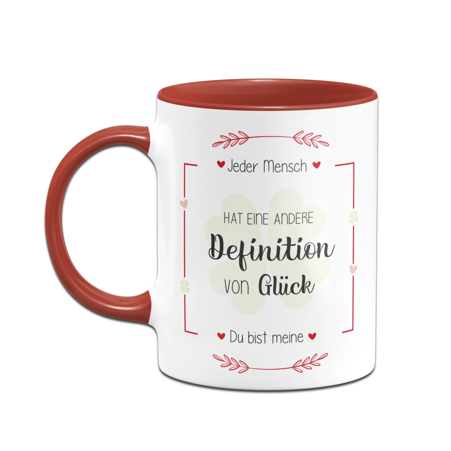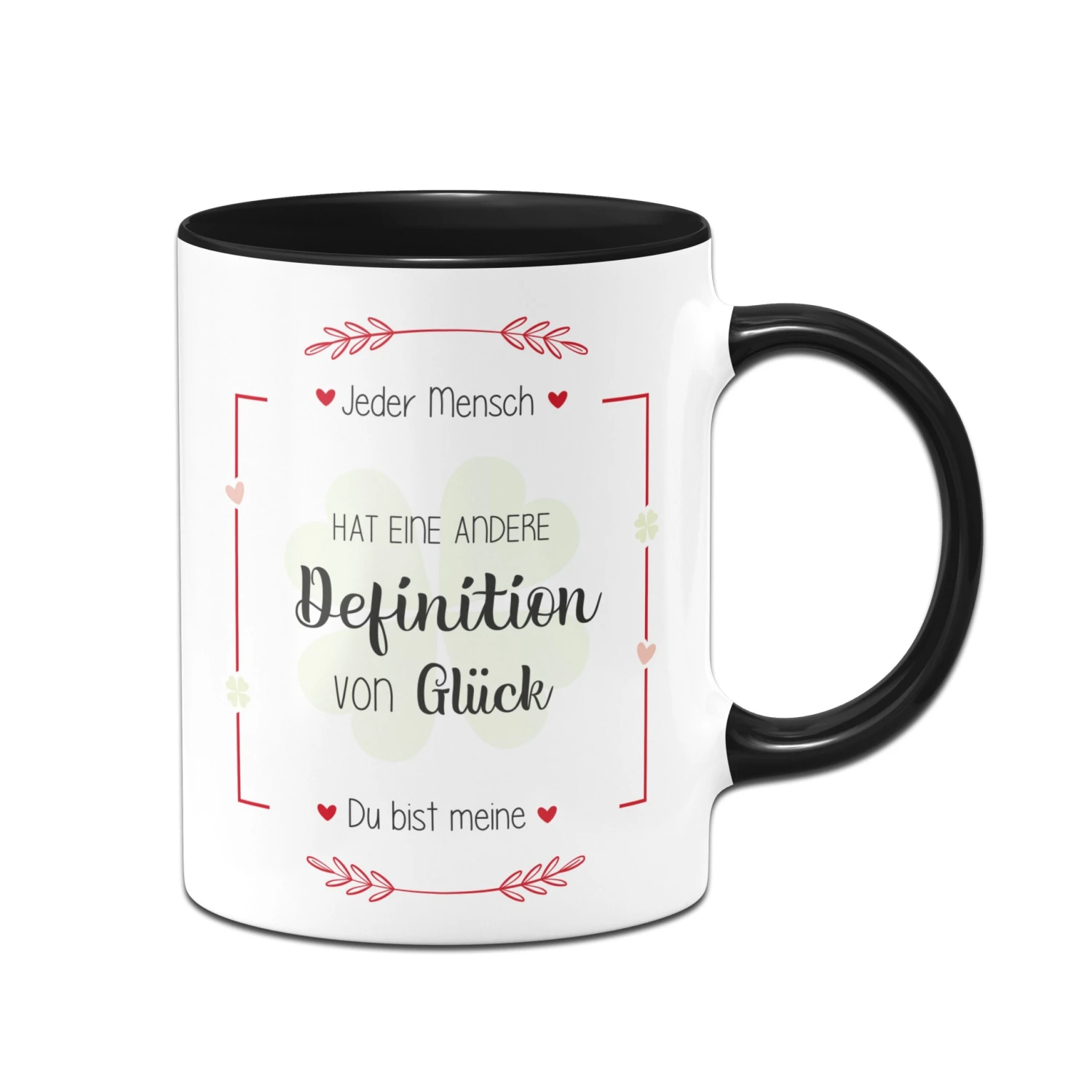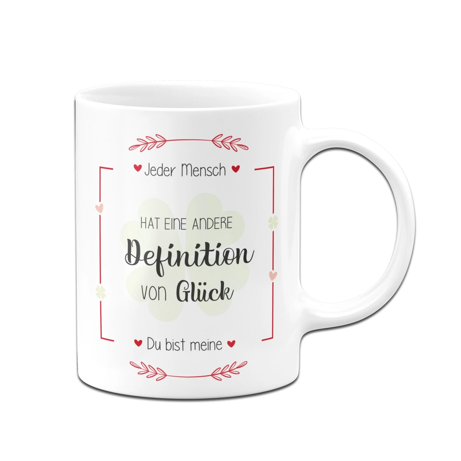 Tasse mit Spruch: Jeder Mensch hat eine andere Definition von Glück 🍀 du bist meine. ❤️